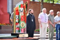 Для того чтобы поближе познакомить жителей белорусского приграничья с историей своей страны, Государственный пограничный комитет Республики Беларусь организовал эстафету «100 лет на страже границы Отечества». Старт эстафета получила 28 мая, в день празднования 100-летия пограничной службы Беларуси и Дня пограничника, в Минске у обелиска Победы. Запланировано провести акции вдоль всей государственной границы, в более чем 40 населенных пунктах приграничья. В Гомеле участники эстафеты собрались у мемориального комплекса воинам-пограничникам в сквере имени Дзержинского. В торжественном митинге по приему эстафеты «100 лет на страже границы Отечества» приняли участие представители исполнительной власти Гомеля, ветераны пограничной службы, общественные организации, учащиеся кадетского училища и других учреждений образования. От имени отдела по взаимодействию с Вооруженными Силами и правоохранительными органами Гомельской епархии мероприятие посетил клирик храма святого Архангела Михаила в г. Гомеле иерей Станислав Смоляк. После торжественного митинга выступил военный оркестр Гомельской пограничной группы. Участники мероприятия также имели возможность познакомиться с мобильной экспозицией Государственного музея истории Великой Отечественной войны. |