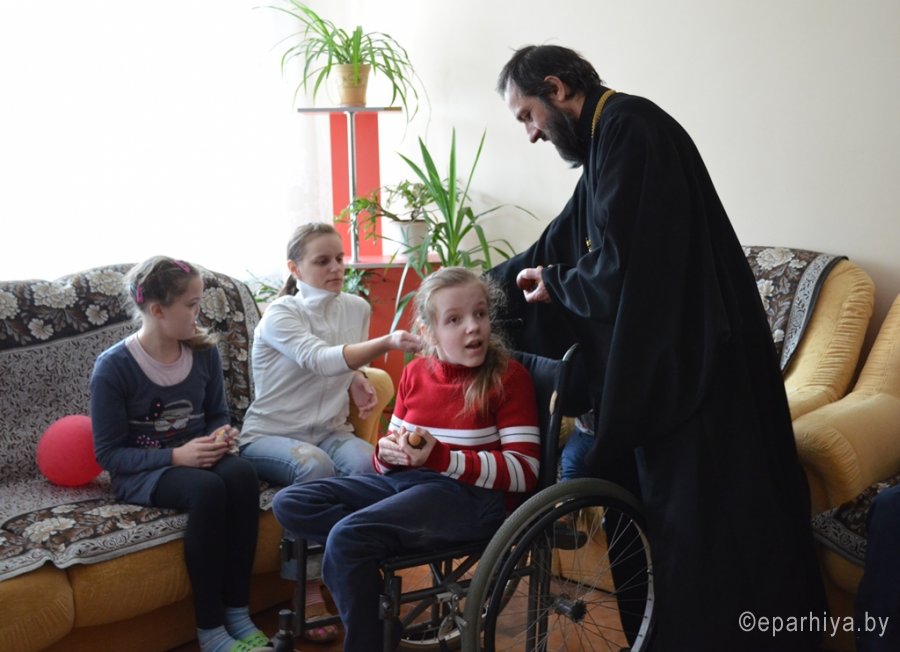 13 апреля 2015г., настоятель храма Покрова Пресвятой Богородицы г. Речицы, протоиерей Николай Ефименко, совместно с прихожанами храма, посетил интернат для детей с физическими отклонениями. В ходе благотворительной акции, он поздравил ребят с главным праздником православных христиан – Пасхой Христовой и преподнес в дар каждому ребенку символ Воскресения – пасхальное яйцо.