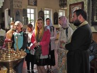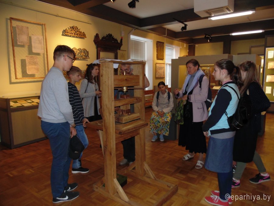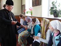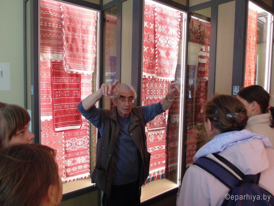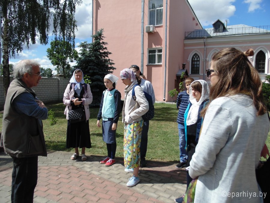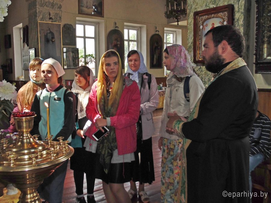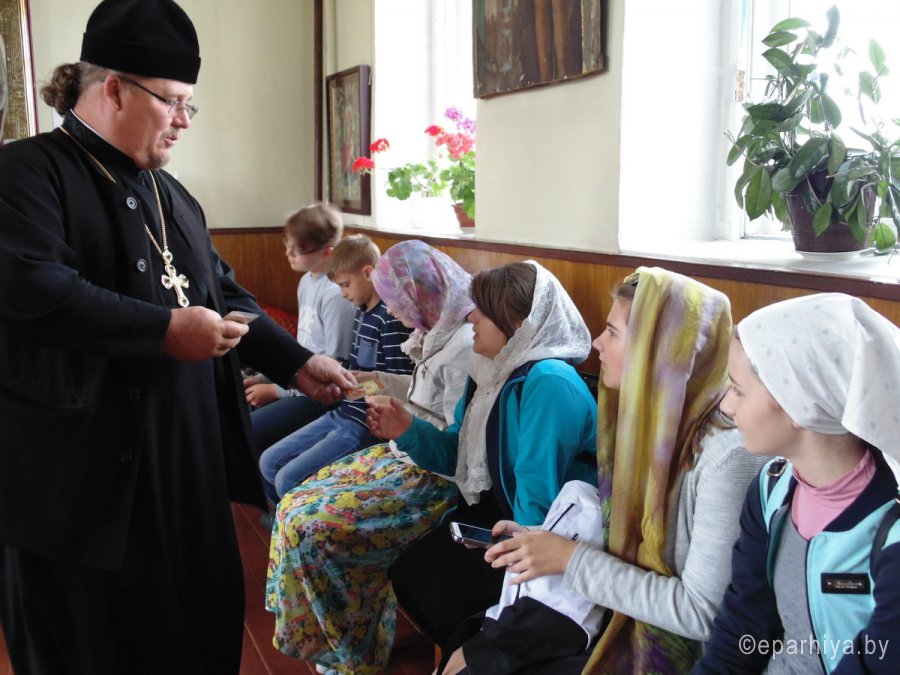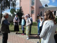 6 июня 2018 года храм Святителя Николая в г. Добруше посетила группа ребят из кружка Православного краеведения г. Бреста. Школьников встретил иерей Алексей Митрофанов, помощник благочинного по религиозному образованию и катехизации. Он показал детям главную святыню храма - чудотворный образ Пресвятой Богородицы Казанская - старинную икону из разрушенного ныне Макарьевского монастыря в поселке Рассвет неподалеку от Добруша. Также священнослужитель рассказал ребятам о святых подвижниках нашего края. После полдника для юных краеведов была организована поездка в Ветковский музей старообрядчества и белорусских традиций, известный центр исследований обычаев и традиций местного населения, где собрано множество уникальных экспонатов. Сотрудник музея Г.И. Лопатин провел для ребят увлекательнейшую экскурсию на белорусском языке. По возвращении в Добруш гостей из Бреста встретил благочинный округа протоиерей Алексей Пилипенко. Ребята поделись впечатлениями насыщенного дня, а священнослужитель подсказал ребятам, какие ещё заповедные места Беларуси можно посетить в своих краеведческих экспедициях, подарил каждому икону-благословение, а для кружка - святой образ и православную литературу. |