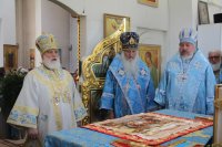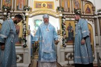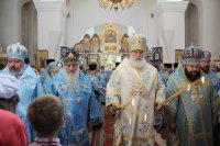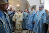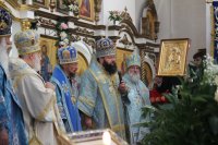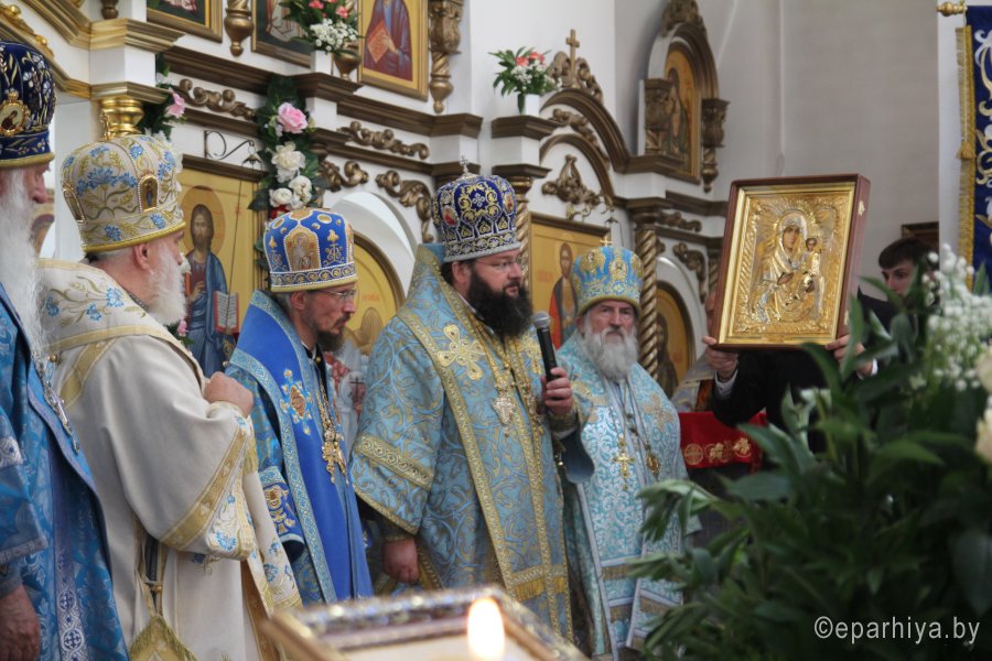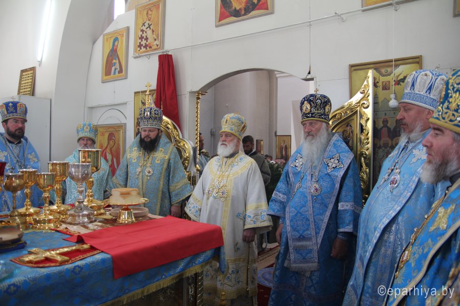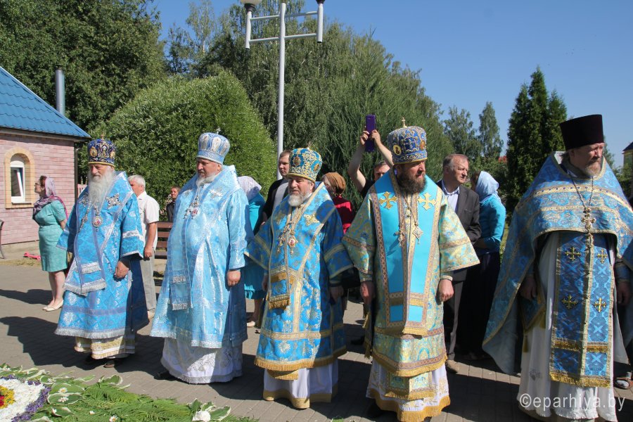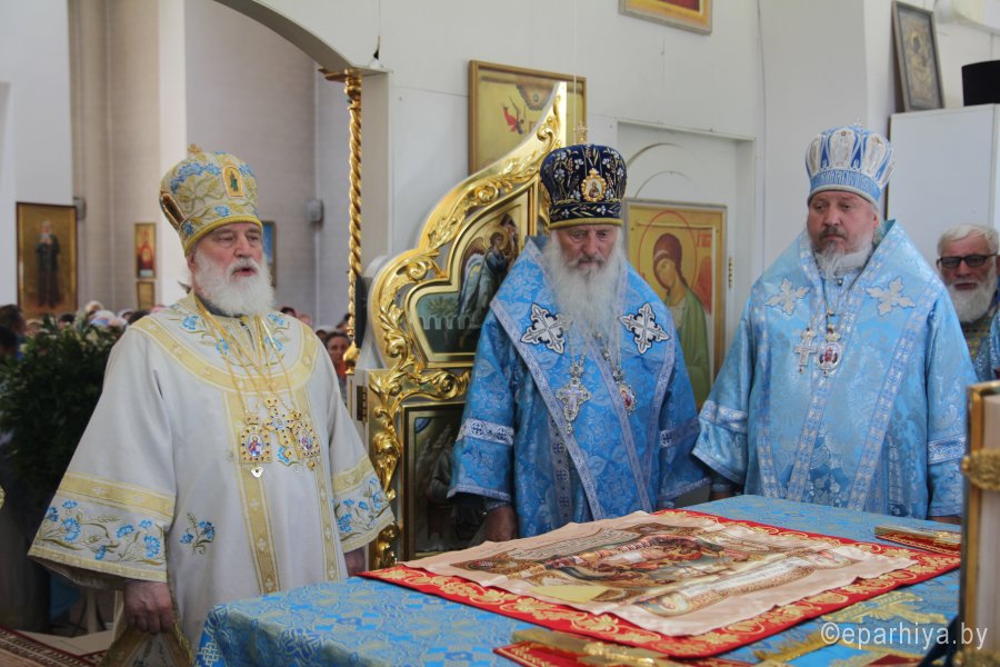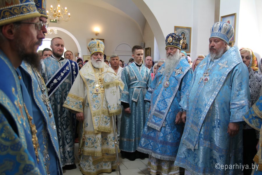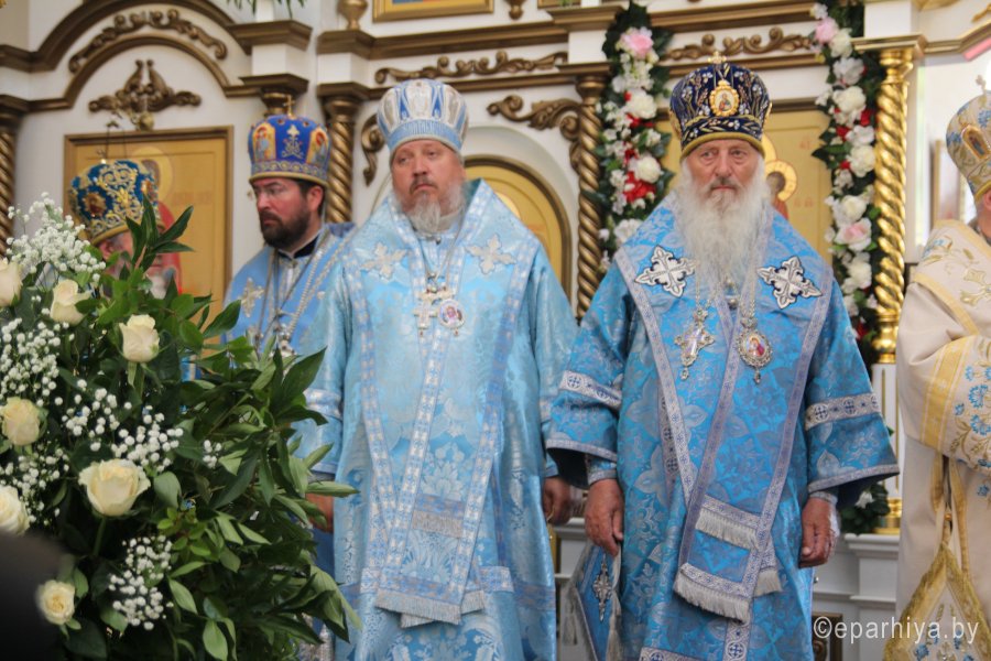 9 июня 2018г. в день праздника Марьиногорской иконы Божией Матери Высокопреосвященный Стефан, архиепископ Гомельский и Жлобинский сослужил за Божественной литургией Высокопреосвященнейшему Павлу, митрополиту Минскому и Заславскому, Патриаршему Экзарху всея Беларуси в Александро-Невском кафедральном соборе города Марьина Горка Борисовской епархии. Его Высокопреосвященству сослужили: митрополит Смоленский и Дорогобужский Исидор; архиепископы Пинский и Лунинецкий Стефан, Могилевский и Мстиславский Софроний, Гомельский и Жлобинский Стефан; епископы Бобруйский и Быховский Серафим, Туровский и Мозырский Леонид, Борисовский и Марьиногорский Вениамин, Лидский и Сморгонский Порфирий. Архипастырям сослужили: управляющий делами Минской Экзархии архимандрит Сергий (Брич); благочинный 1-го Пуховичского церковного округа, настоятель Александро-Невского собора протоиерей Александр Целков и духовенство Борисовской епархии. Торжественное богослужение посетили: Уполномоченный по делам религий и национальностей Леонид Павлович Гуляко; депутат Палаты представителей Национального собрания Республики Беларусь Валерий Иосифович Воронецкий; заместитель председателя Минского областного исполнительного комитета Виктор Иванович Сиренко; председатель Пуховичского районного исполнительного комитета Сергей Дмитриевич Ленковец и другие высокопоставленные гости. Богослужебные песнопения исполнил хор Александро-Невского собора города Марьина Горка под управлением Анастасии Целковой. Проповедь перед Причастием произнес иерей Игорь Целков. По заамвонной молитве Патриарший Экзарх, сослужащие архипастыри и священнослужители совершили славление Пресвятой Богородице. По отпусте Божественной литургии с приветственным словом к митрополиту Павлу обратился епископ Борисовский и Марьиногорский Вениамин. Владыка сердечно поблагодарил Патриаршего Экзарха за архипастырский визит и вручил ему медаль в честь Марьиногорской иконы Божией Матери. С приветственным словом к присутствующим в храме обратился митрополит Исидор. Он поблагодарил за приглашение на торжественное богослужение и вручил епископу Вениамину образ Смоленской иконы Божией Матери. Владыка Вениамин высказал слова признательности митрополиту Исидору и преподнес ему в дар образ Жировичской иконы Божией Матери. Патриарший Экзарх поблагодарил архипастырей, прибывших на церковное торжество. Совместная молитва и соборное служение епископов и священнослужителей при большом стечении верующих людей в присутствии представителей государственной власти свидетельствуют о подлинном единстве нашего народа в Церкви Христовой, — отметил митрополит Павел и пожелал, чтобы это единомыслие, согласие и молитва продолжалось и в будущем. Владыка Экзарх поздравил причастников с принятием Святых Христовых Таин, преподал верующим архипастырское благословение и на молитвенную память вручил всем молящимся иконки Марьиногорской Божией Матери. Именинникам было провозглашено многолетие, и митрополит Павел вручил им просфоры и цветы. Фоторепортаж |