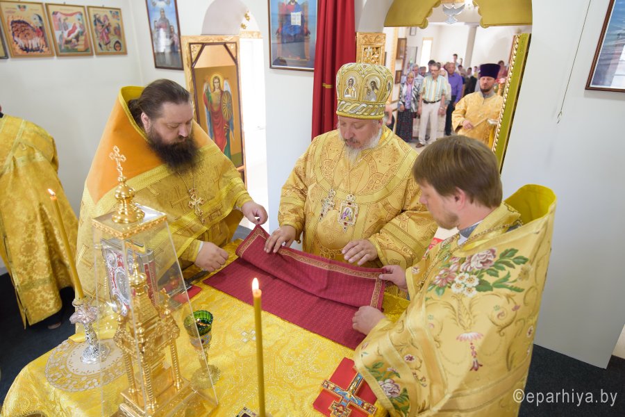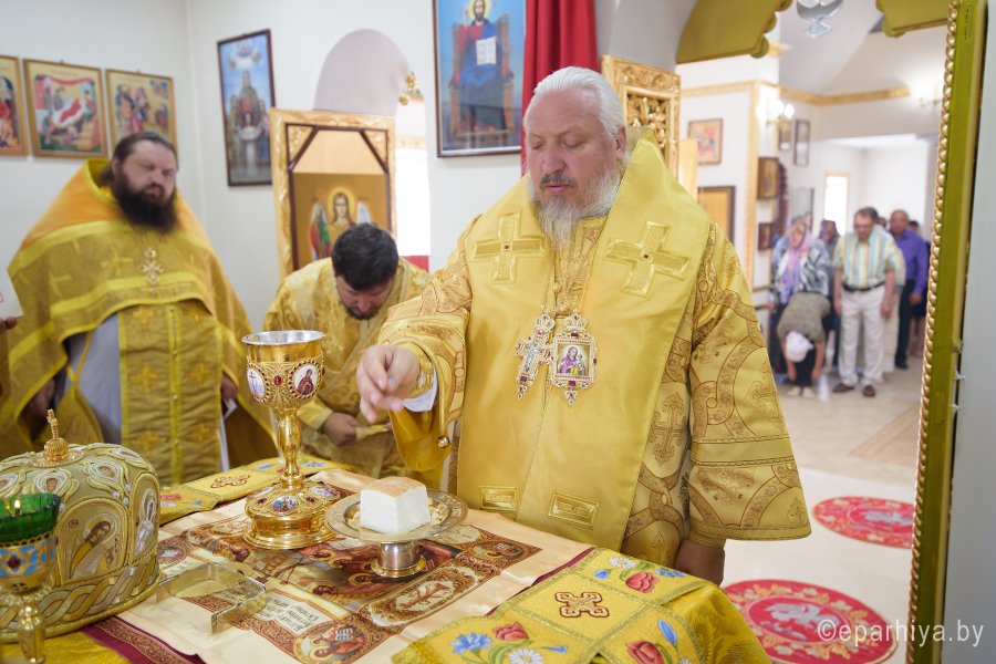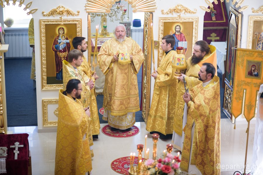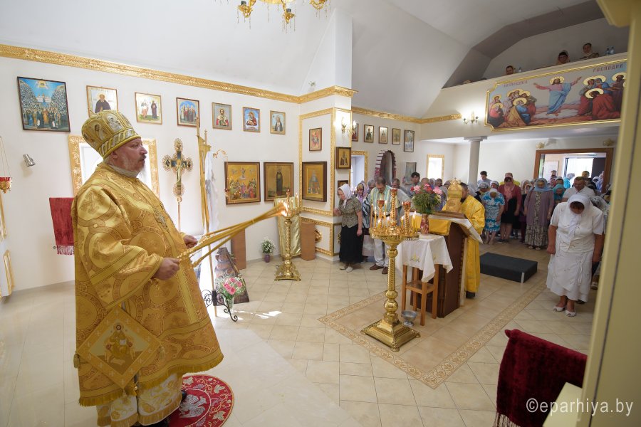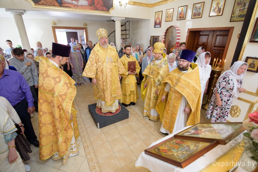 10 июня 2018г., в Неделю 2-ю по Пятидесятнице, Всех святых в земле русской просиявших, день памяти преподобного Никиты Исповедника Высокопреосвященный Стефан, архиепископ Гомельский и Жлобинский совершил Божественную литургию в одноименном храме аг.Поколюбичи. Высокопреосвященному сослужили: секретарь Гомельской епархии протоиерей Георгий Алампиев, благочинный монастырей Гомельской епархии архимандрит Амвросий (Шевцов), благочинный Гомельского районного округа протоиерей Артемий Кривицкий, настоятель храма протоиерей Александр Алехнович. По окончании Литургии Владыка поздравил всех с принятием Святых Христовых Таин и обратился к молящимся со словами Архипастырского назидания. В завершении богослужения был совершен Крестный ход. |