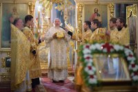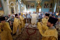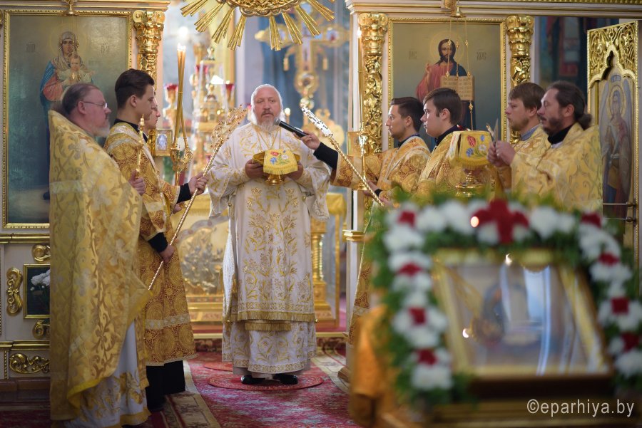 Божественную литургию в Неделю 3-ю по Пятидесятнице, день памяти Собора Белорусских святых, Высокопреосвященный Стефан, архиепископ Гомельский и Жлобинский совершил в Свято-Петро-Павловском кафедральном соборе г.Гомеля. Проповедь по запричастном стихе произнес клирик Свято-Петро-Павловского кафедрального собора иеромонах Аристарх (Дроздов). По окончании богослужения Владыка поздравил причастников с принятием Святых Христовых Таин и обратился к молящимся со словами Архипастырского назидания. |