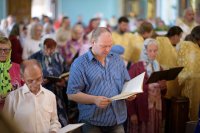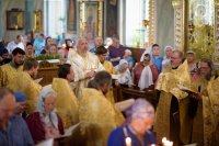 Вечернее богослужение с чтением акафиста нараспев Высокопреосвященнейший Стефан архиепископ Гомельский и Жлобинский совершил 17 июня в Соборе святых апостолов Петра и Павла г. Гомеля в сослужении духовенства собора. По окончании богослужения Владыка обратился к присутствующим со словами Архипастырского назидания. |