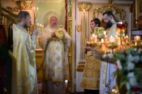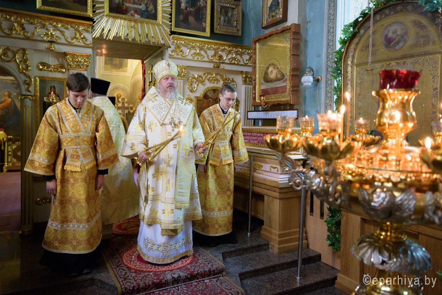 Божественную литургию в среду седмицы 4-й по Пятидесятнице 20 июня 2018г., Высокопреосвященный Стефан, архиепископ Гомельский и Жлобинский в сослужении духовенства собора совершил в Казанском приделе Свято-Петро-Павловского кафедрального собора г.Гомеля. По окончании богослужения Владыка поздравил причастников с принятием Святых Христовых Таин и обратился к молящимся со словами Архипастырского назидания. |