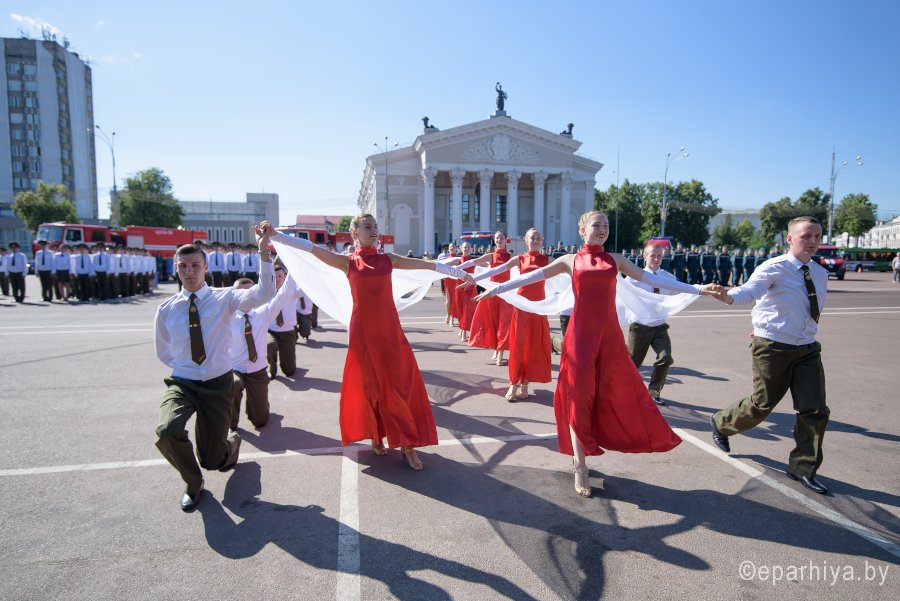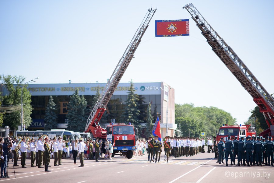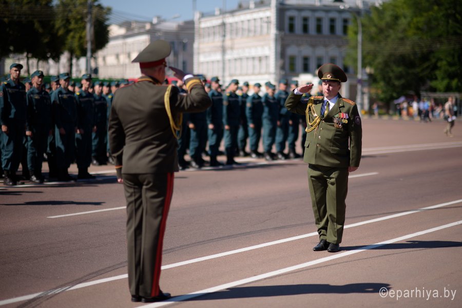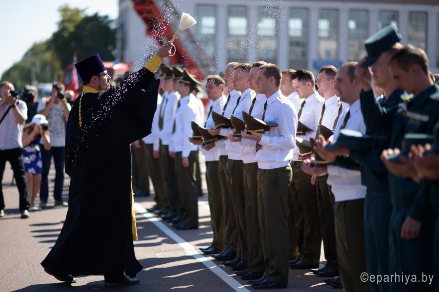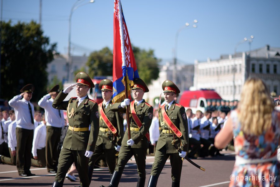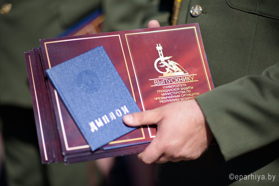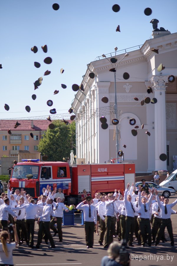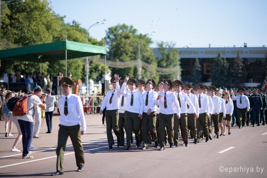 21 июня на площади Ленина г.Гомеля прошел торжественный выпуск офицеров-спасателей Гомельского филиала Университета гражданской защиты МЧС Республики Беларусь. В этом году дипломы о высшем образовании и погоны лейтенанта получили шестьдесят девять спасателей, обучавшихся на инженерном факультете по очной форме и сто слушателей, прошедших обучение заочно. В торжественном мероприятии принял участие Высокопреосвященный Стефан, представители руководства Гомельской области, города Гомеля, силовых взаимодействующих структур и общественных организаций. Пять выпускников отмечены дипломами с отличием, в том числе трое из них награждены золотой медалью «За отличное окончание учреждения высшего образования». Почетные грамоты Гомельского горисполкома сотрудникам филиала вручил заместитель председателя Гомельского горисполкома по социальным вопросам Атаманчук В. Г. Высокопреосвященный Стефан преподал выпускникам своё Архипастырское благословение, а под звон колоколов Свято-Петро-Павловского кафедрального собора председатель отдела по взаимодействию Гомельской епархии с Вооруженными Силами и правоохранительными органами протоиерей Игорь Ольшанов и протоиерей Вадим Лапицкий освятили личный состав, окропив Святой водой. «Время, проведенное в учебном заведении, не было простым. Годы учебы – лучшие годы, но это и тяжелый труд на пути профессионального становления. Преподаватели и командиры сделали все, чтобы вы, молодые лейтенанты, стали настоящими специалистами, гражданами и патриотами своей страны», – отметил первый заместитель министра по чрезвычайным ситуациям Беларуси Александр Худолеев. По сложившейся традиции выпускники попрощались со знаменем учебного заведения, а после прощального вальса молодые лейтенанты в последний раз прошли торжественным маршем в общем строю. |