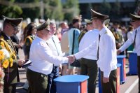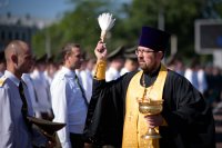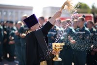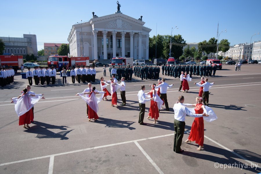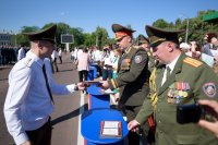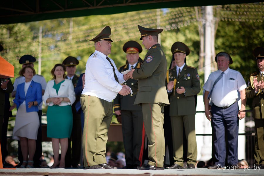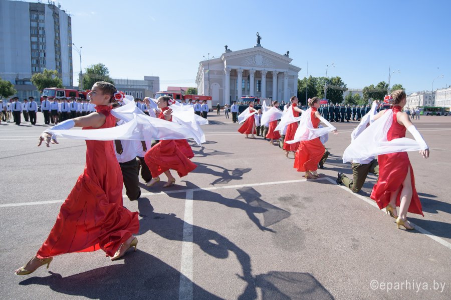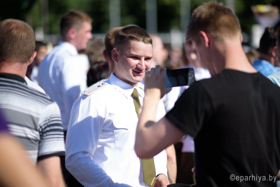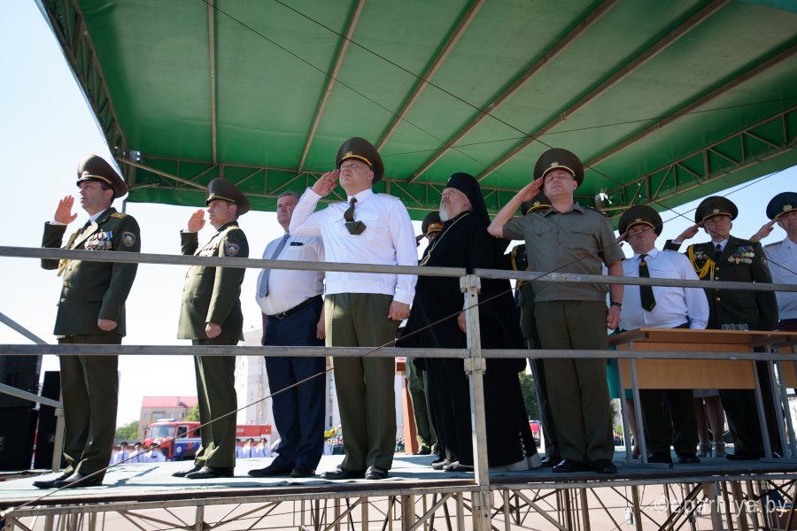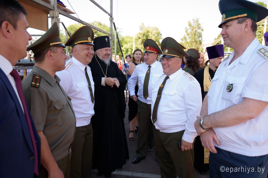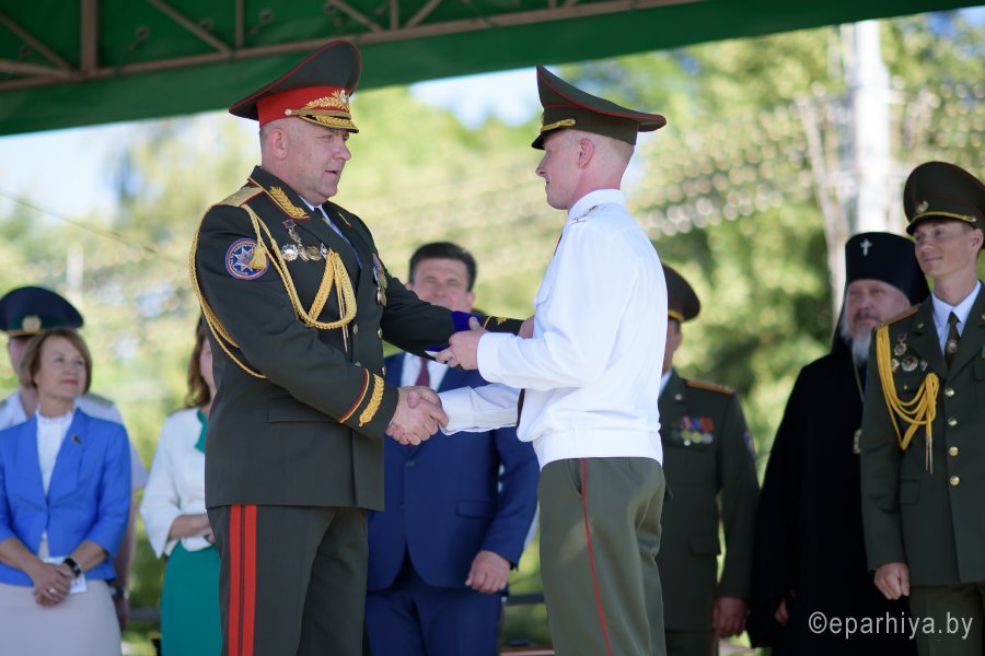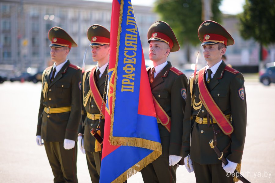 21 июня на площади Ленина г.Гомеля прошел торжественный выпуск офицеров-спасателей Гомельского филиала Университета гражданской защиты МЧС Республики Беларусь. В этом году дипломы о высшем образовании и погоны лейтенанта получили шестьдесят девять спасателей, обучавшихся на инженерном факультете по очной форме и сто слушателей, прошедших обучение заочно. В торжественном мероприятии принял участие Высокопреосвященный Стефан, представители руководства Гомельской области, города Гомеля, силовых взаимодействующих структур и общественных организаций. Пять выпускников отмечены дипломами с отличием, в том числе трое из них награждены золотой медалью «За отличное окончание учреждения высшего образования». Почетные грамоты Гомельского горисполкома сотрудникам филиала вручил заместитель председателя Гомельского горисполкома по социальным вопросам Атаманчук В. Г. Высокопреосвященный Стефан преподал выпускникам своё Архипастырское благословение, а под звон колоколов Свято-Петро-Павловского кафедрального собора председатель отдела по взаимодействию Гомельской епархии с Вооруженными Силами и правоохранительными органами протоиерей Игорь Ольшанов и протоиерей Вадим Лапицкий освятили личный состав, окропив Святой водой. «Время, проведенное в учебном заведении, не было простым. Годы учебы – лучшие годы, но это и тяжелый труд на пути профессионального становления. Преподаватели и командиры сделали все, чтобы вы, молодые лейтенанты, стали настоящими специалистами, гражданами и патриотами своей страны», – отметил первый заместитель министра по чрезвычайным ситуациям Беларуси Александр Худолеев. По сложившейся традиции выпускники попрощались со знаменем учебного заведения, а после прощального вальса молодые лейтенанты в последний раз прошли торжественным маршем в общем строю. |