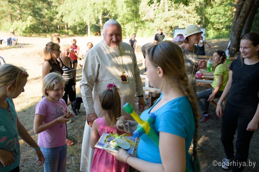 21 июня 2018г. Высокопреосвященный Стефан, архиепископ Гомельский и Жлобинский посетил детский палаточный лагерь, организованный отделом религиозного образования и катехизации Гомельской епархии на подворье Свято-Никольского мужского монастыря в аг. Терюха. В ходе общения с Владыкой дети поделились впечатлениями о жизни в лагере, показали поделки, сделанные своими руками - для воспитанников были организованы мастер-классы по спортивному ориентированию, рукоделию, гончарному делу. В завершение визита Высокопреосвященный рассказал детям о необходимости иметь знания о том, как выживать не только в комфортных условиях городских квартир, но также и на природе, где человек чувствует единение с Богом и преподал Архипастырское благословение. |