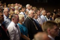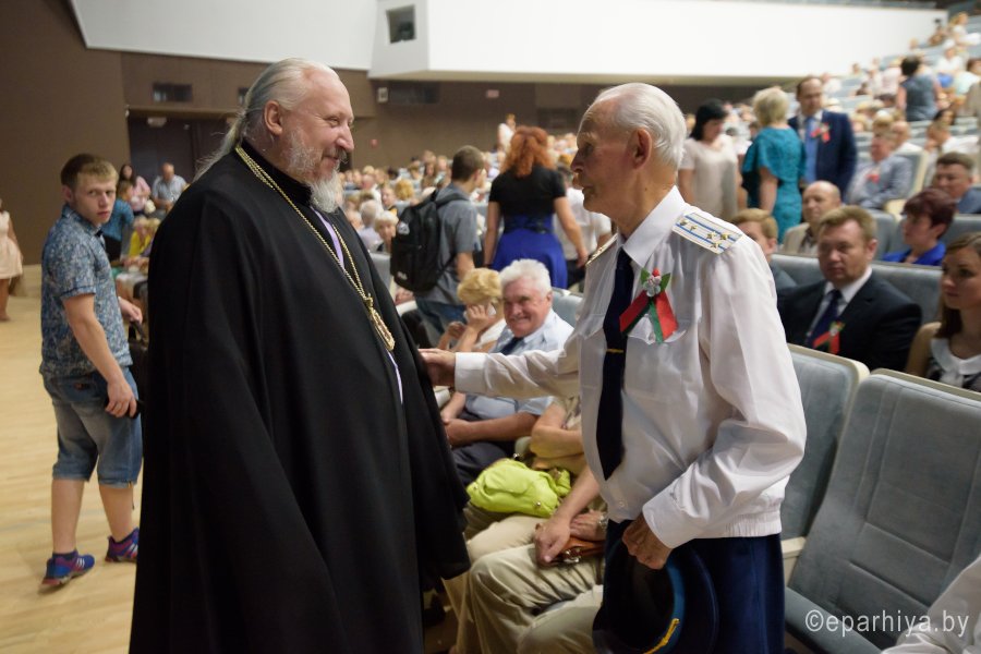 29 июля 2018г. в Гомельском областном общественно-культурном центре Высокопреосвященный Стефан, архиепископ Гомельский и Жлобинский принял участие в торжественном собрании, посвящённом Дню Независимости Республики Беларусь и 74-й годовщине освобождения от немецко-фашистских захватчиков. В мероприятии также приняли участие ветераны Великой Отечественной войны, труда и Вооружённых Сил, представители трудовых коллективов, руководство области и города, активисты общественных организаций. В ходе торжественного собрания прошла церемония присвоения почётного звания «Человек года» по итогам работы за 2017 год. В Гомельской области конкурс проводится с 2008 года. Заключительным аккордом торжественного собрания стал концерт коллективов художественной самодеятельности области. |