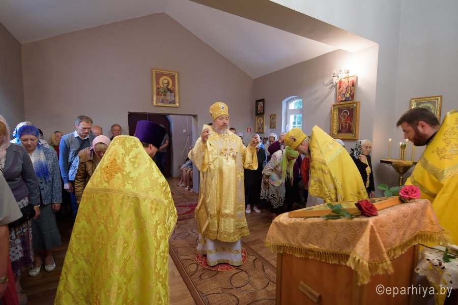 30 июня, в субботу седмицы 5-й по Пятидесятнице, Высокопреосвященный Стефан, архиепископ Гомельский и Жлобинский совершил Божественную литургию в храме святителя Николая Чудотворца, д. Старый Кривск Рогачевского района. Высокопреосвященному сослужили: благочинный монастырей Гомельской епархии архимандрит Амвросий (Шевцов), благочинный Рогачевского округа протоиерей Алексий Смотрицкий, настоятель прихода и духовенство благочиния. По окончании богослужения Владыка поздравил причастников с принятием Святых Христовых Таин и обратился к молящимся со словами Архипастырского назидания. |