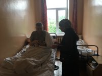 1 июля 2018 года прихожане храма прп. Серафима Саровского в г. Гомеле посетили больницу сестринского ухода в рабочем посёлке Большевик. Многие пациенты больницы не имеют родственников, к этим людям никто не приезжает с домашними гостинцами и с желанием просто пообщаться. Персонал больницы прикладывает все усилия по уходу и эмоциональной поддержке своих подопечных, но заменить близких людей невозможно. Неравнодушные прихожане Серафимовского храма уже не в первый раз посещают больницу. Специально для этого собираются подходящие вещи, одежда, которые пригодятся пациентам. Покупаются сладости и фрукты. Но главное, это та радость общения, которой так жаждут одинокие старики. Как рассказывает медперсонал, на большие церковные праздники в больнице бывает многолюдно от посетителей, а вот между ними пусто. Именно поэтому и было выбрано для посещения время в праздничное межсезонье. |