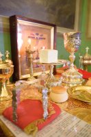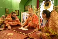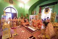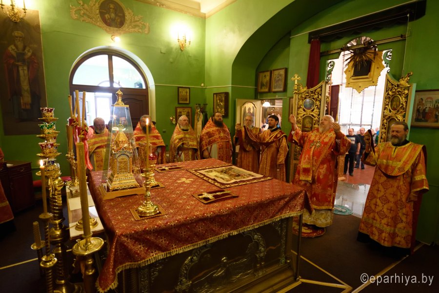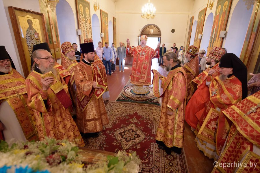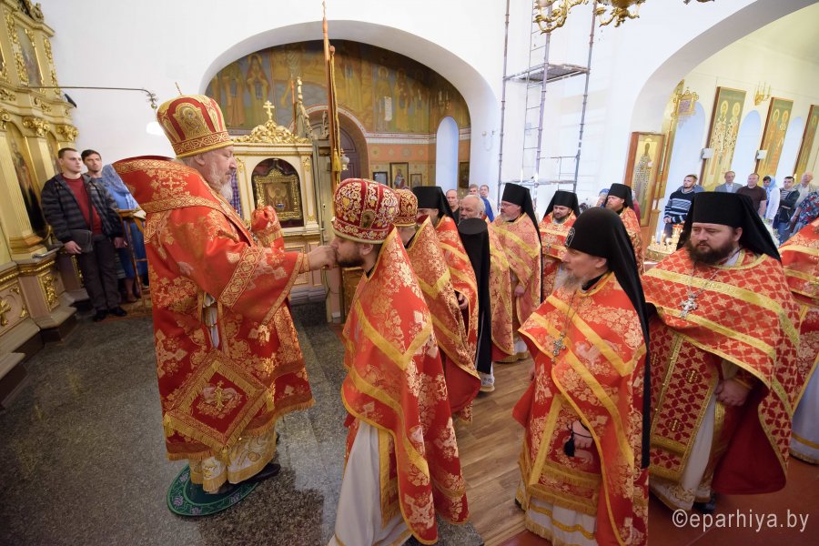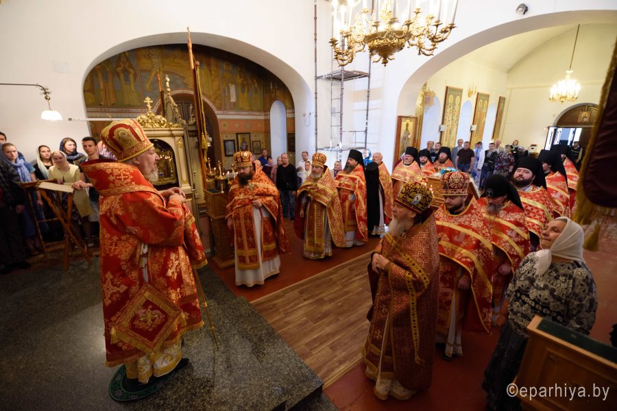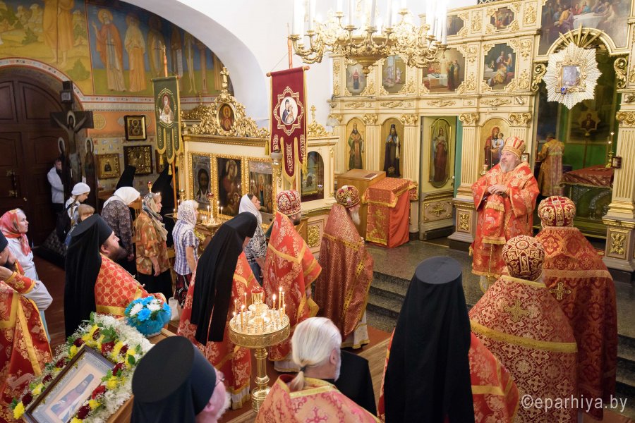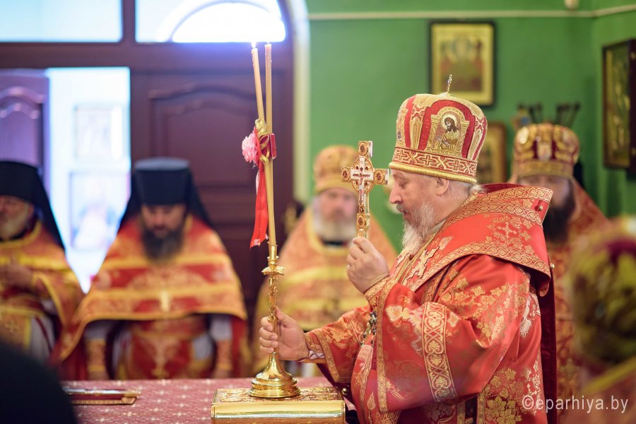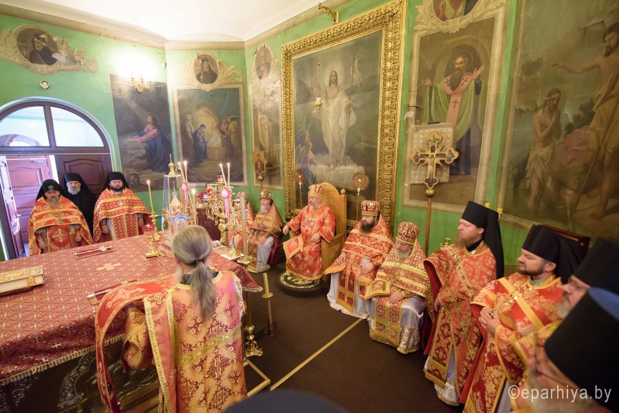 6 июля в Гомельской епархии день особый. Пятый год подряд, в день памяти священномученика Митрофана (Краснопольского), архиепископа Астраханского (+1919), в Никольском мужском монастыре г. Гомеля собираются игумены и игуменьи епархиальных монашеских общин с братиями и сестрами, чтобы не только совершить память первого Гомельского архипастыря, но и обсудить насущные вопросы монашеской жизни. Высокопреосвященнейший Стефан, архиепископ Гомельский и Жлобинский, возглавил Божественную литургию в храме Святителя Николая Чудотворца монастырского комплекса. Его Высокопреосвященству сослужили наместник Никольской обители архимандрит Амвросий (Шевцов) и монашеское духовенство Гомельской епархии. За богослужением молились матушки-настоятельницы женских монашеских общин епархии с сестрами: игумения Вера (Афонькина) (Свято-Тихвинский женский монастырь), игумения Иоанна (Ярец) (Казимировский Свято-Успенский женский монастырь), монахиня Архелая (Новикова) (Свято-Иоанно-Кормянский женский монастырь). Уставные песнопения исполнил молодежный хор Никольского монастыря (регент Харченко Екатерина). Проповедь перед Причастием произнес иеромонах Аристарх (Дроздов). По окончании Литургии владыка Стефан с духовенством совершил славление священномученика Митрофана (Краснопольского) и обратился ко всем со словами архипастырского наставления. Затем на монастырском некрополе была совершена лития по упокоившимся архиепископу Аристарху (Станкевичу) (+2012), схиархимандриту Антонию (Кузнецову) (+2014), возродившим монашескую жизнь в Гомельской епархии.. После богослужения общение монашествующих продолжилось за общей трапезой. |