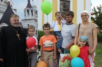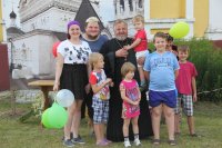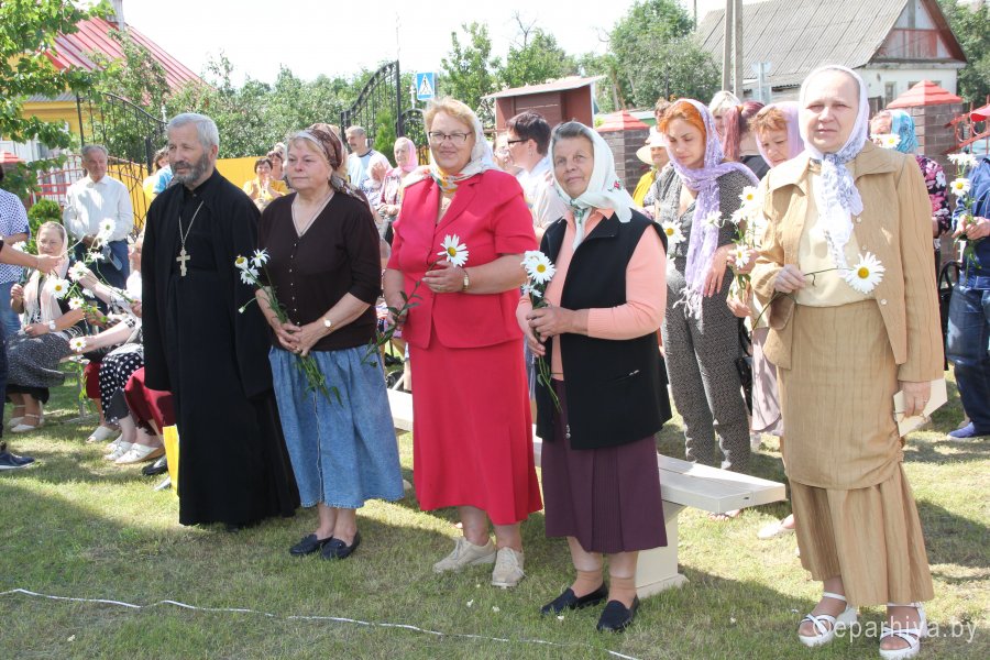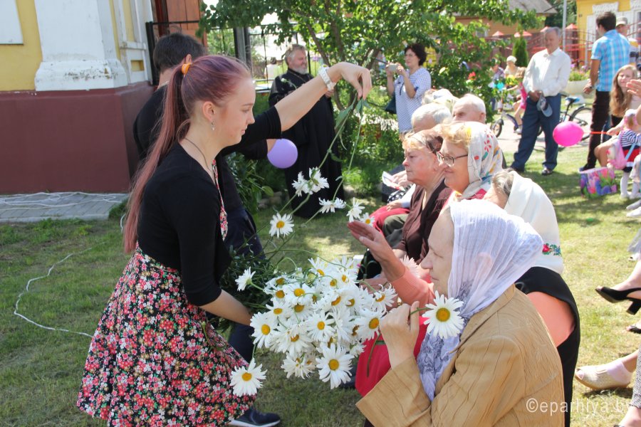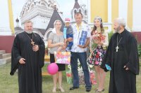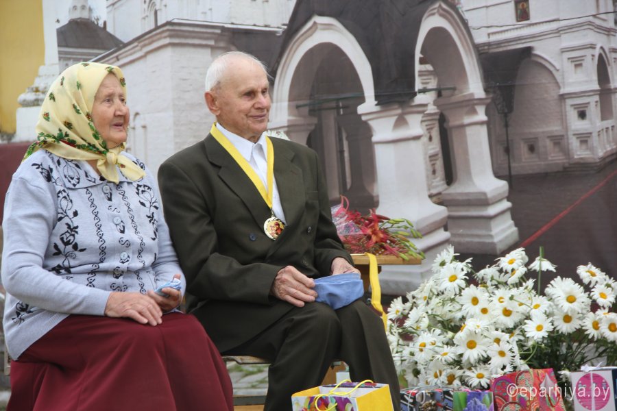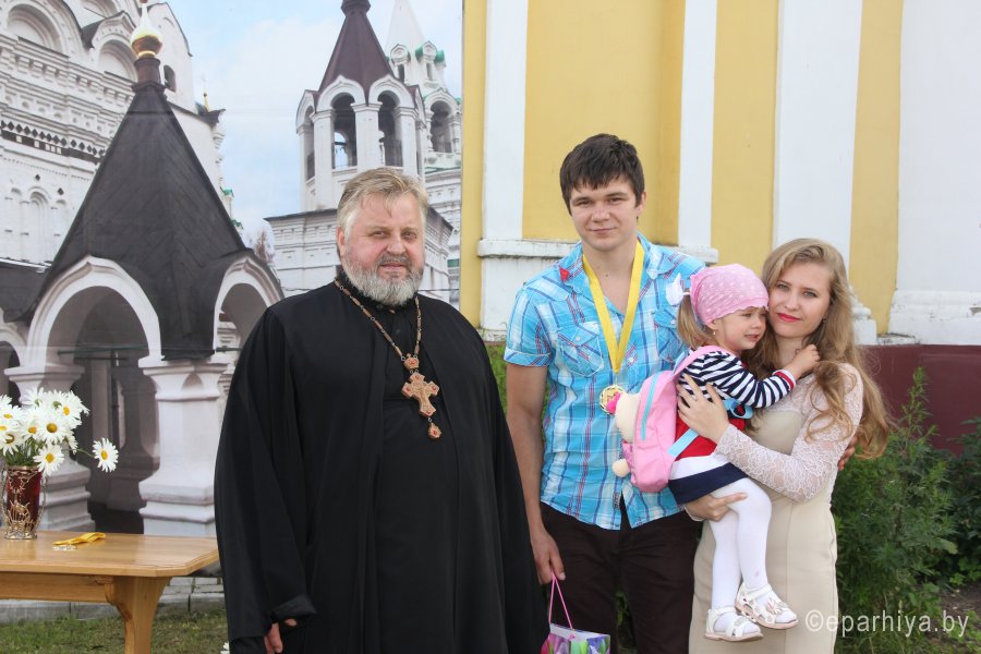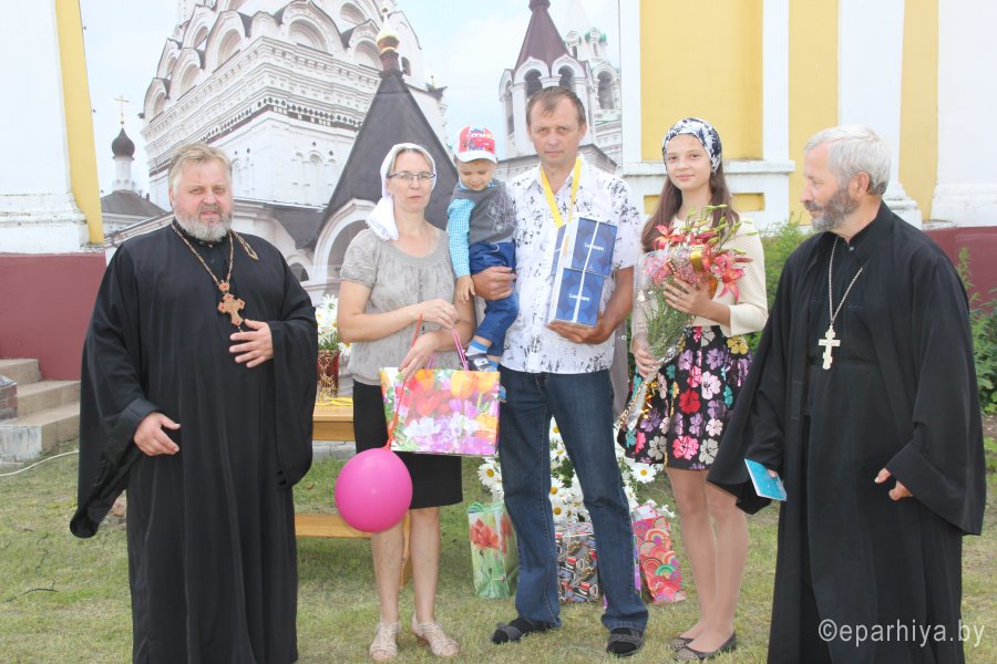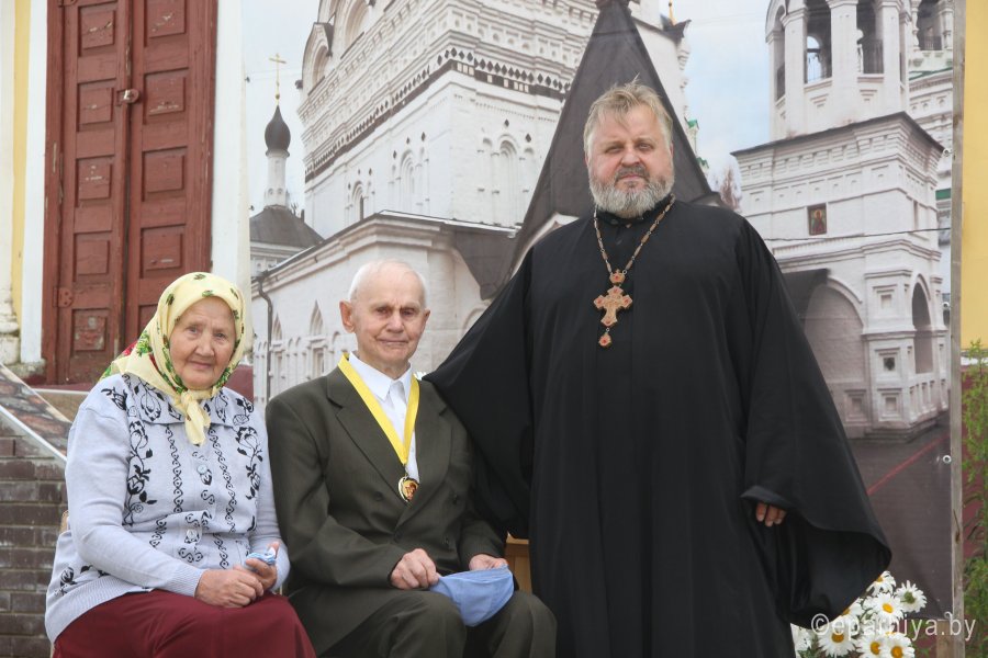 В день памяти святых Петра и Февронии, которые издревле считались покровителями брака и семьи, у Спасо-Преображенского храма в г.Чечерске состоялся праздник, посвященный Дню любви, семьи и верности. С самыми добрыми пожеланиями о любви и мире в семье в начале праздника ко всем присутствующим обратился благочинный округа протоиерей Георгий Шмидов, а также напомнил чечерянам историю святых муромских князей Петра и Февронии, в честь которых мы и празднуем 8 июля День семьи, любви и верности. Праздничные мероприятия состояли из интерактивной викторины о семье, детско-родительского конкурса рисунков «Семейный портрет», спортивной эстафеты, подвижных игр для детей и взрослых. Каждый желающий смог сделать себе изображение символа семьи – ромашки, специальными гипоалергенными красками. Все участники конкурсов получили призы. Одним из призов был магнитики с изображением символа праздника – ромашки. Праздник продолжила концертная программа, в ходе которой чествовали супружеские пары из райцентра и сёл, отмечающих юбилей совместной жизни, достойно исполняющий родительский долг и являющихся примером трудолюбия и добродетели. Это супруги Кудрицкие, прожившие вместе 60 лет, и супруги Михаленки, которые более 20 лет идут вместе по жизни. Им были вручены медали «За любовь и верность» и памятные подарки – икона святых Петра и Февронии и «Закон Божий». Отец Георгий обращаясь к собравшимся отметил, что нелегко прожить супругам вместе столько лет, но это возможно, если соблюдать заповеди Божии о любви, смирении, долготерпении. Также отец Георгий вручил медали и памятные подарки многодетной семье Адаменко, воспитывающей четырех детей, молодой семье Чеботаревых из д.Ботвиново, а также в номинации «Родители» семье Гоцмановых из Чечерска. Супружескую пару протоиерея Георгия и матушки Надежды, у которых девять детей, прихожане от всей души поздравили с праздником семьи. Весь концерт прошел в теплой, дружественной обстановке. В финале прозвучал гимн семье, во время которого ребята-волонтеры раздали всем присутствующим ромашки - символ Дня семьи, любви и верности. |
