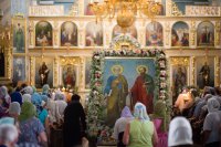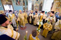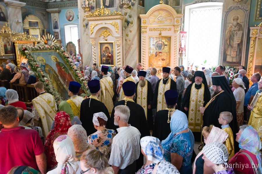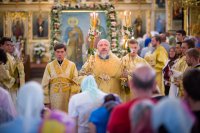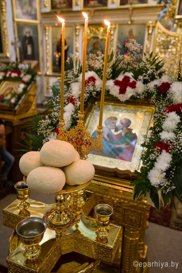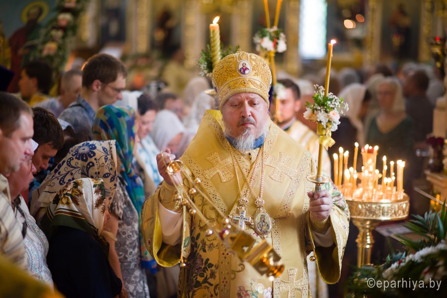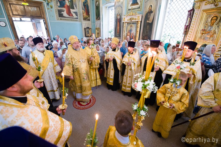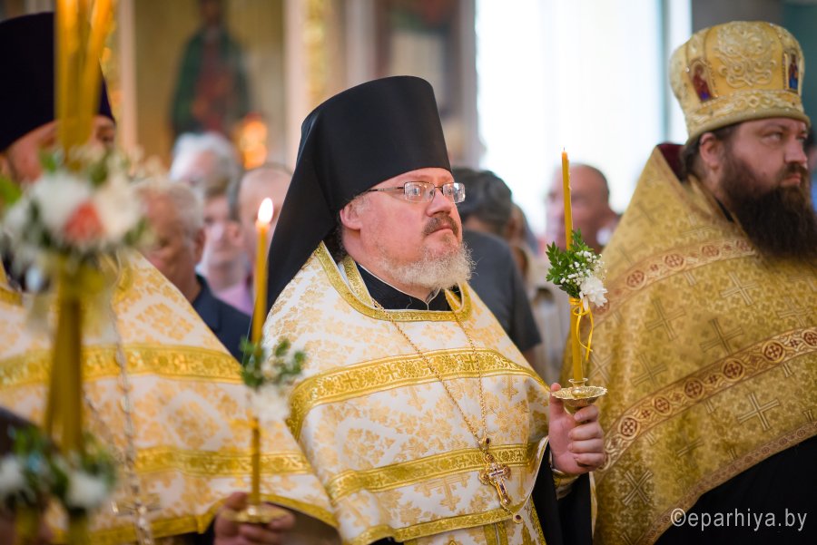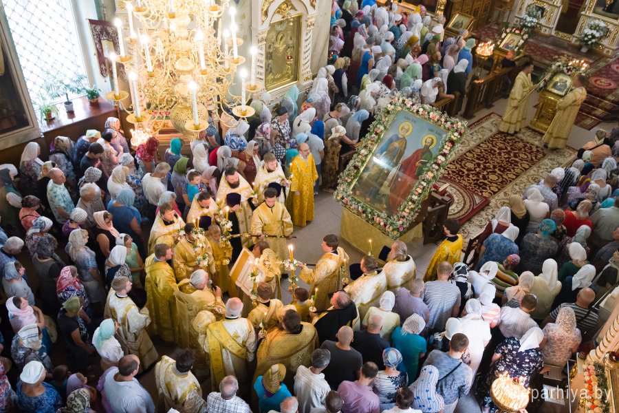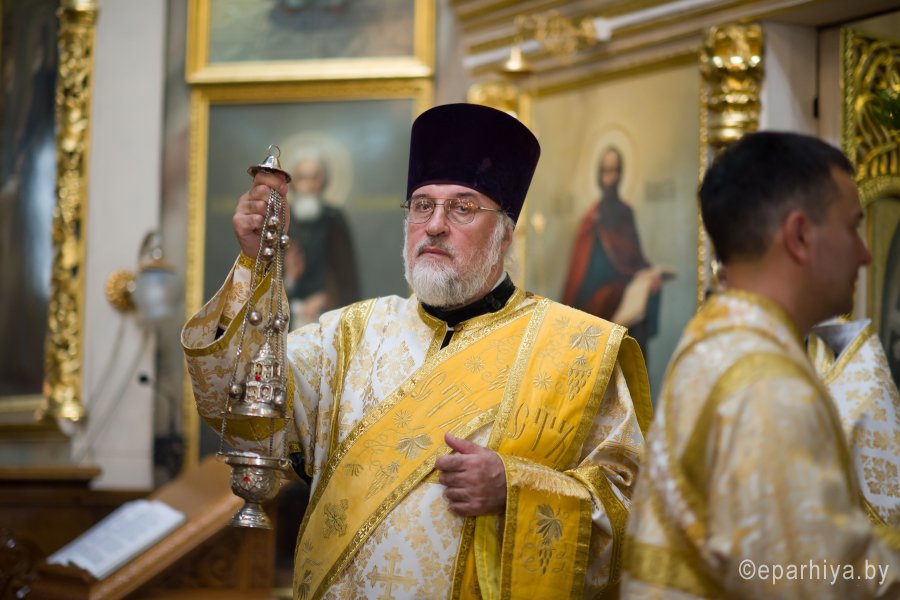 День памяти святого – это великое и памятное событие в жизни каждого верующего и прихода, престольный день памяти в приходе – это главное событие для его прихожан и духовенства. 11 июля 2018г., в канун дня памяти славных и всехвальных первоверховных апостолов Петра и Павла Высокопреосвященный Стефан возглавил всенощное бдение, в одноименном кафедральном соборном храме г. Гомеля Высокопреосвященнейшему сослужили: секретарь Гомельской епархии протоиерей Георгий Алампиев, благочинный монастырей Гомельской епархии архимандрит Амвросий (Шевцов) и духовенство епархии. |