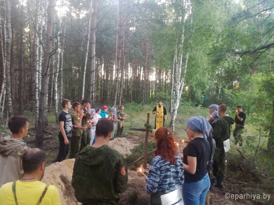 Отголоски Великой Отечественной войны продолжают звучать на Рогачёвской земле даже спустя почти восемь десятилетий. В районе, силами 52-го отдельного специализированного поискового батальона, поискового отряда “Звезда” Белорусского добровольного общества охраны памятников истории и культуры, пензенского поискового отряда “Поиск-Вездеход” ведётся активная поисковая работа. Благодаря им останки советских солдат возвращаются родственникам или находят покой в братских могилах. 12 июля 2018 года лагерь поискового отряда “Поиск-Вездеход” посетил настоятель прихода храма Святого Архангела Михаила агрогородка Тихиничи протоиерей Николай Степанов. Священник отслужил панихиду по погибшим воинам, а после совместной молитвы в непринуждённой обстановке побеседовал с юными поисковиками. Ребята рассказали, что отряд нашел останки 61 воина советской армии, погибших в 1944 г. во время операции «Багратион» при освобождении Беларуси. Также священнослужитель объяснил, что Церковь всегда с почтением относилась к воинскому долгу, благословляла воинов на борьбу, если речь шла о защите Родины и ближнего. Именно поэтому в сонме святых Православной Церкви много воинов: среди них святой благоверный князь Александр Невский, Димитрий Донской и многие другие. Каждый христианин – это воин Христа, призванный вести борьбу со злом прежде всего в самом себе. |