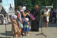 «Жили они долго и счастливо и умерли в один день»… Знакомый финал многих русских сказок, но мало кто знает, что этот финал не придуман, а взят из реальной жизни реальных людей – муромского князя Петра и его жены Февронии, покровителей семьи и брака. 15 июля на территории прихода храма св. блгв. кн. Александра Невского в г.Гомеле прошло незабываемое мероприятие, посвященное празднованию дня памяти святых Петра и Февронии Муромских. Своими удивительными номерами прихожан порадовали вокальный ансамбль «Август» отделения дневного пребывания учреждения «Центр социального обслуживания населения Новобелицкого района г. Гомеля», а также народный хор «Верасень» (ДК «Белицкий») под руководством Светланы Романовны Ворсоба. Помимо музыкальной программы, которая отличалась разнообразием, насыщенностью и достойным исполнением, гостей праздника ожидали тематическая фотозона, игра для всей семьи «7 Я», мастер-классы по изготовлению голубей из бумаги, традиционное чаепитие со сладостями и призы, подготовленные молодежной группой прихода. Праздник прошел на одном дыхании и оставил у прихожан много ярких эмоций и впечатлений. По окончании мероприятия протоиерей Владимир Силенко поздравил всех с праздником, вручил многодетным семьям подарки и пожелал семейного благополучия, умножения любви и помощи Божией заступничеством святых Петра и Февронии. |