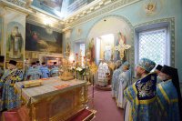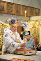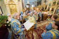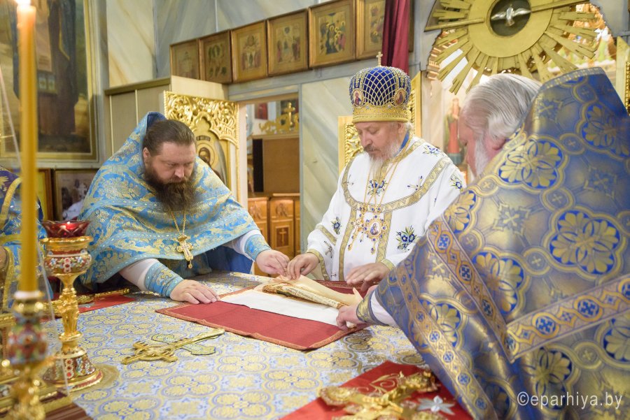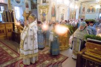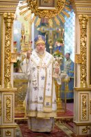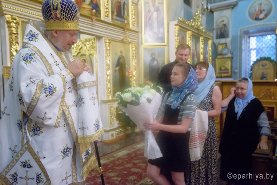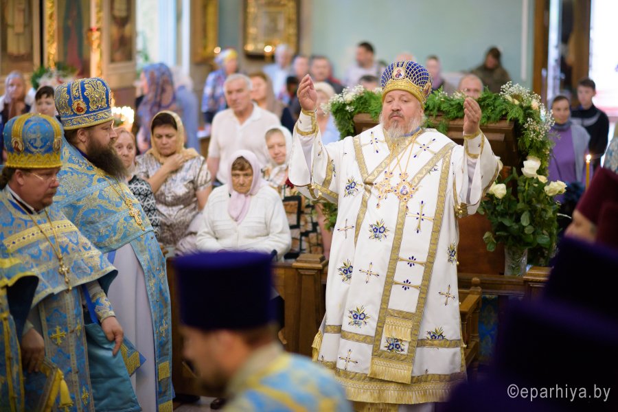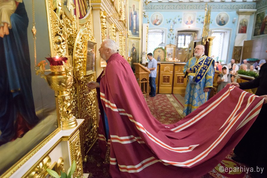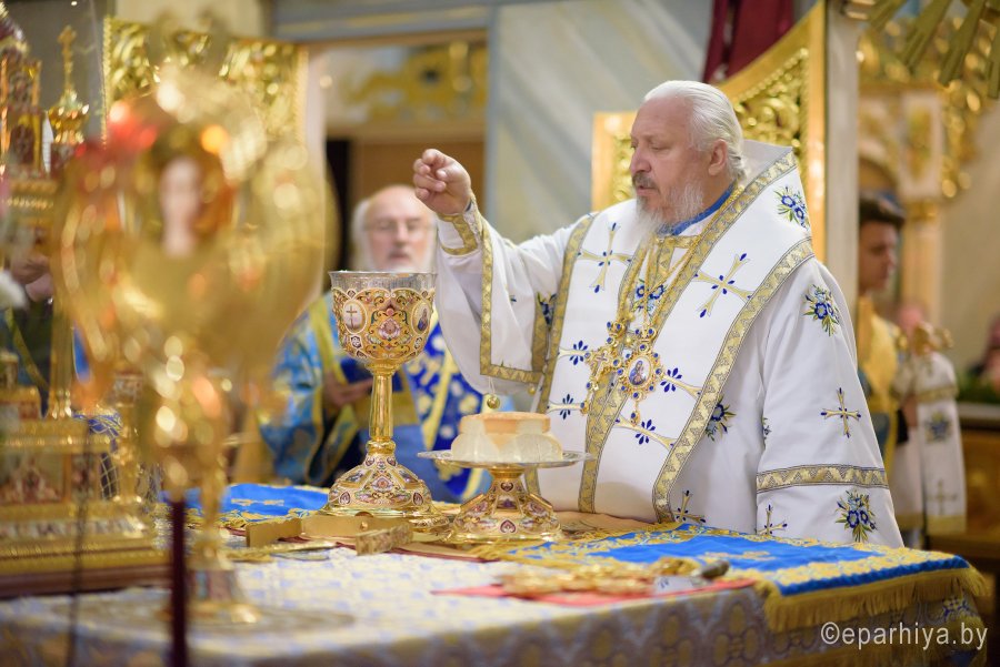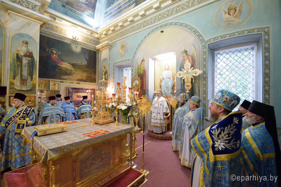 Божественную литургию в праздник Казанской иконы Божией Матери Высокопреосвященный Стефан совершил в Свято-Петро-Павловском кафедральном соборе г.Гомеля 21 июля 2018г. Высокопреосвященному сослужили: благочинный монастырей Гомельской епархии архимандрит Амвросий (Шевцов), Председатель отдела по архитектуре и строительству Гомельской епархии протоиерей Георгий Тур, благочинные округов, председатели отделов епархии, настоятели храмов г.Гомеля и духовенство епархии. За богослужением Высокопреосвященный Владыка вознес молитву о мире на Украине. Со словами проповеди к молящимся обратился клирик собора иеромонах Аристарх (Дроздов). За богослужением молились настоятельница Свято-Тихвинского женского монастыря г.Гомеля игуменья Вера (Афонькина) и старшая сестра Свято-Иоанно-Кормянского женского монастыря аг.Корма монахиня Архелая (Новикова) с сестрами обителей. Уставные песнопения исполнил хор Свято-Петро-Павловского кафедрального собора г.Гомеля под управлением регента Ольги Поляковой. По окончании богослужения Владыка совершил славление празднику, поздравил причастников с принятием Святых Христовых Таин и обратился к молящимся со словами Архипастырского назидания. |