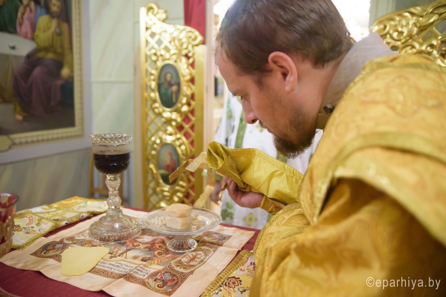 Божественную литургию в праздник положения честной ризы Господа нашего Иисуса Христа в Москве, 23 июля 2018г. Высокопреосвященный Стефан в сослужении духовенства собора совершил в криптовом храме Свято-Петро-Павловского кафедрального собора г.Гомеля. По окончании богослужения Владыка поздравил причастников с принятием Святых Христовых Таин и обратился к молящимся со словами Архипастырского назидания. |