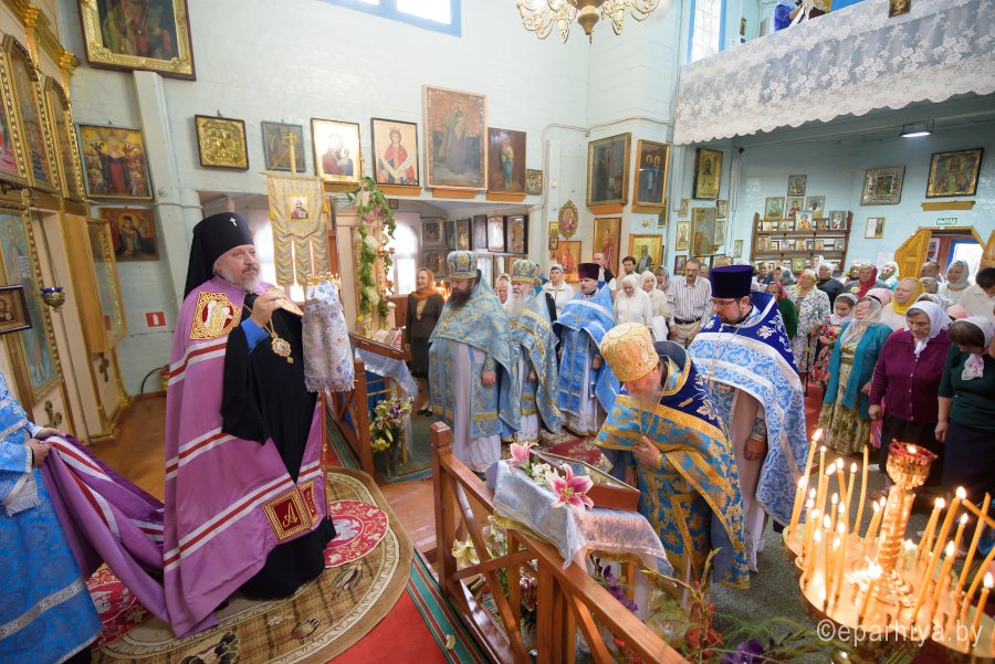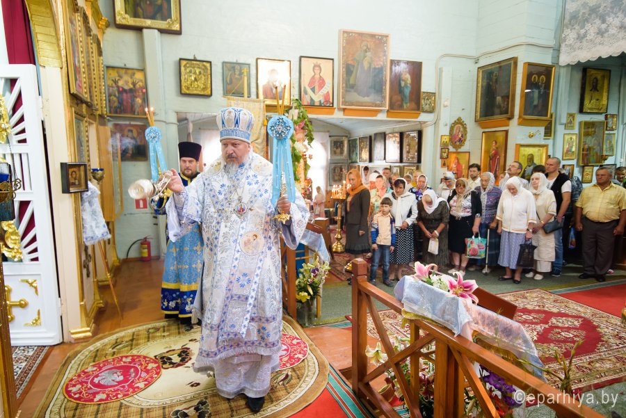 Божественную литургию в праздник иконы Божией Матери "Троеручица" 25 июля 2018г. Высокопреосвященный Стефан совершил в храме святителя Николая Чудотворца д. Старая Белица. Высокопреосвященному сослужили: благочинный монастырей Гомельской епархии архимандрит Амвросий (Шевцов), благочинный Гомельского районного округа протоиерей Артемий Кривицкий, благочинный Гомельского городского округа протоиерей Игорь Ольшанов и духовенство епархии. По окончании богослужения Владыка поздравил причастников с принятием Святых Христовых Таин, обратился к молящимся со словами Архипастырского назидания и в память об этом дне раздал всем присутствующим иконки. |