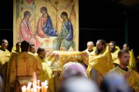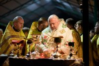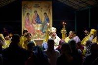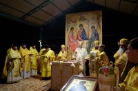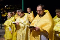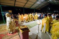 1030-летие Крещения Руси в Гомельской епархии отметили открытием ежегодного молодежного слёта, который традиционно проходит на подворье Свято-Никольского мужского монастыря в д.Терюха. Ночью 27 июля 2018г. Божественную литургию в храме Смоленской иконы Божией Матери в д.Терюха совершил Высокопреосвященный Стефан, архиепископ Гомельский и Жлобинский. Высокопреосвященному сослужили: благочинный монастырей Гомельской епархии архимандрит Амвросий (Шевцов), Председатель Информационного одела Гомельской епархии протоиерей Олег Кострома, благочинный Гомельского районного округа протоиерей Артемий Кривицкий, благочинный Гомельского городского округа протоиерей Игорь Ольшанов, Председатель Отдела по работе с молодежью Гомельской епархии иерей Дмитрий Мельников и духовенство епархии. По окончании богослужения Владыка обратился к участникам молодежного слёта со словами Архипастырского назидания и в память об этом дне раздал всем иконки. |