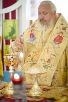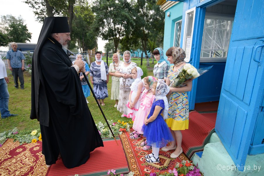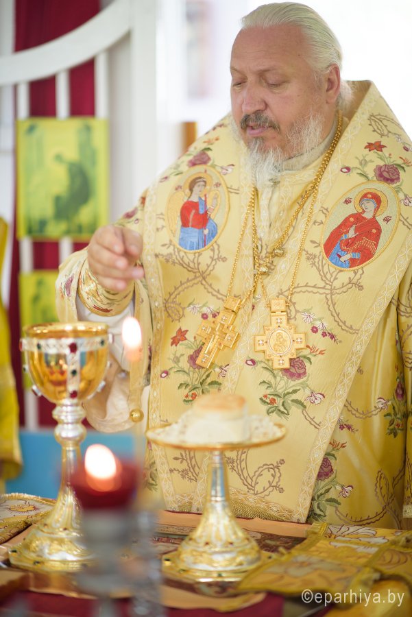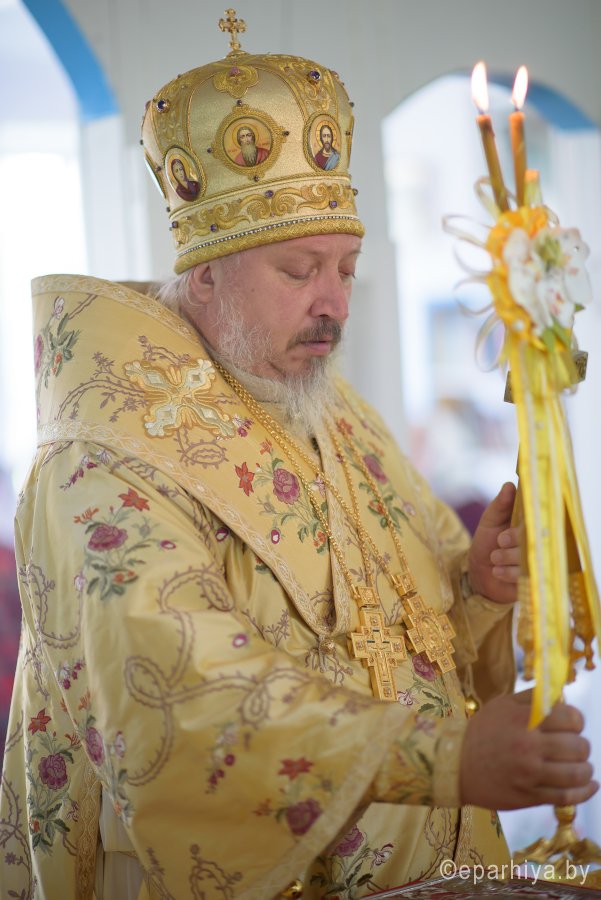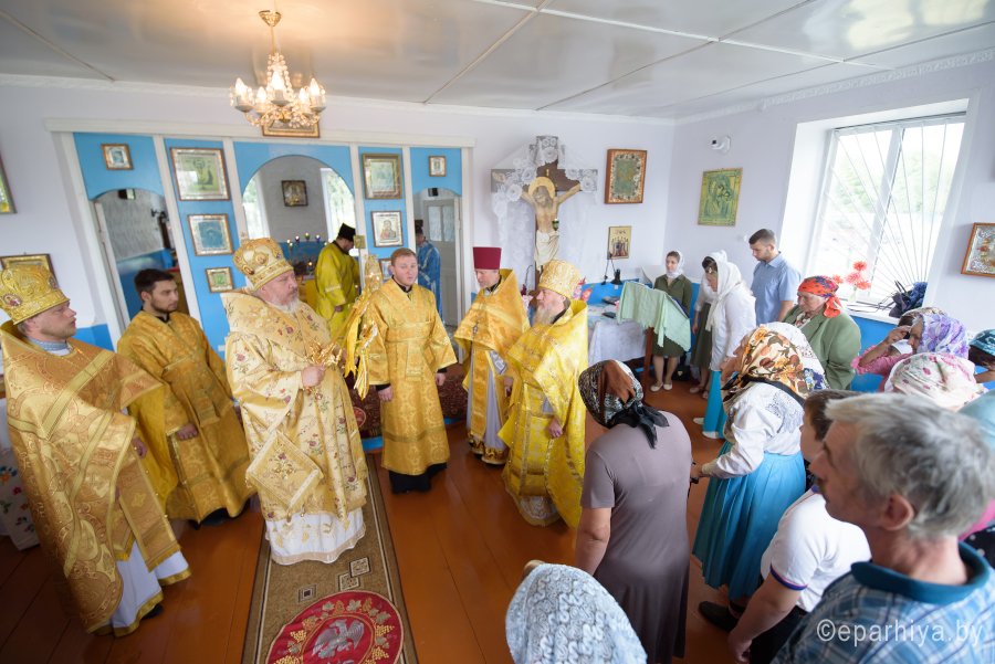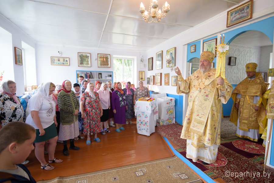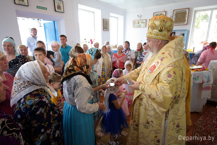 Божественную литургию в день памяти памяти святых отцев шести Вселенских Соборов 29 июля 2018г. Высокопреосвященный Стефан совершил в храме Покрова пресвятой Богородицы аг.Кирово. Высокопреосвященному сослужили: секретарь Гомельской епархии протоиерей Георгий Алампиев, настоятель прихода протоиерей Павел Бондарчук и духовенство епархии. По окончании богослужения Владыка поздравил причастников с принятием Святых Христовых Таин, обратился к молящимся со словами Архипастырского назидания и в память об этом дне раздал всем присутствующим иконки. |