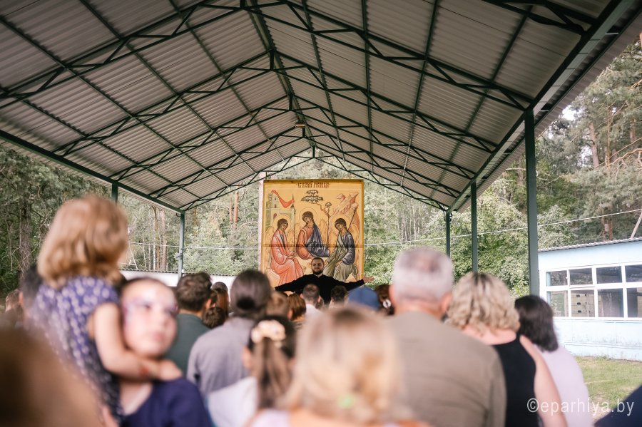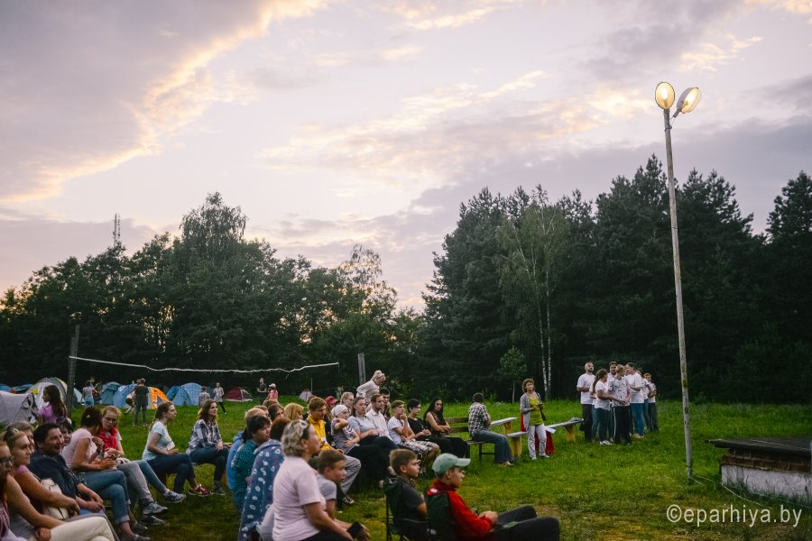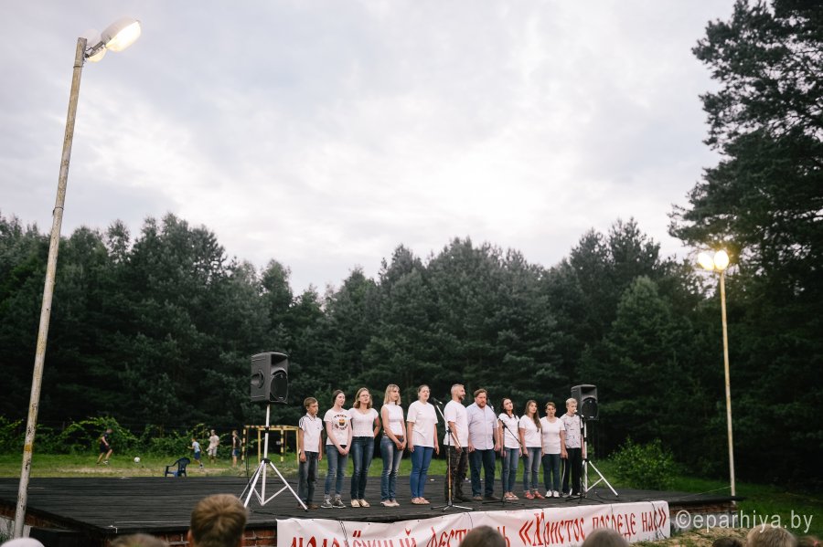 По благословению Высокопреосвященнейшего Стефана архиепископа Гомельского и Жлобинского на подворье Свято-Никольского монастыря в д. Терюха состоялся доселе небывалый слет православной молодежи! Более 300 человек из нашей и соседних епархий, а так же из России – на 4 дня стали одной большой дружной семьей. Впервые д. Терюха принимала столько гостей, и впервые состоялся слет, который включил в себя и ежегодный фестиваль «Христос посреде нас». Начало слета положила ночная Литургия, которую возглавил Высокопреосвященнейший Стефан. В своем обращении Владыка призвал молодежь к любви и единству, которых порой так не хватает современному молодому человеку. После Богослужения эту чудесную ночь продолжило совместное чаепитие и общение со священнослужителями. Следующий день в палаточном городке начался с игр на знакомство и возможности общаться на всевозможные темы со священнослужителями. После вкуснейшего обеда и отдыха на свежем воздухе, прибыл долгожданный гость из Никольского монастыря – aрхимандрит Савва (Мажуко) . В неподражаемом стиле он говорил на непростые темы, но доступным для всех языком и как всегда сумел заинтересовать всех присутствующих. А в вечернее время группы молодежных общин всех благочиний епархии презентовали свои команды в незаурядных инсценировках и песнях, что украсило этот вечер смехом и дружбой. И уже, как одна большая команда, молодежь собралась у костра для совместного просмотра фильма под открытым небом. Этот день не желал заканчиваться и ребята не хотели расходиться. И до самого утра горел костер, и пелись песни. Суббота началась с Божественной Литургии с совместным богослужебным пением, а после завтрака всех ждала увлекательнейшая интеллектуальная игра «Фавор» на знание и логику, которую провел лауреат премии Международной Ассоциации клубов «Что? Где? Когда?» и глава клуба интеллектуальных игр «Белая рысь» Климович Леонид Валентинович. Один час игры пролетел, как мгновение, о чем сожалели все команды-участницы. После обеда началась подготовка к ежегодному песенному фестивалю «Христос посреде нас». В это время кто-то мог распеваться в прибывшем караоке, кто-то участвовал в военно-спортивных состязаниях с полосой препятствия, стрельбой и практикой оказания первой медицинской помощи, кто-то проводил время с рыцарями из ордена «Вечность», которые все эти дни оставались в лагере и охраняли наш покой. Вечером состоялось торжественное открытие песенного фестиваля «ХРИСТОС ПОСРЕДЕ НАС». Прекрасный звук, освещение и харизма ведущего собрали всех у сцены, где все участники показали высокий уровень певческого мастерства. Не без труда беспристрастное жюри выбирало победителя. В итоге ГРАН-ПРИ фестиваля «ХРИСТОС ПОСРЕДЕ НАС», а так же ценный приз заслуженно получил дуэт «Ярыца» из г. Жлобин. Приз зрительских симпатий достался харизматичному Александру Гаврику (г. Гомель). В заключение фестиваля всех поразило невероятное файер-выступление и салют, озаривший ночное небо в Терюхе. Воскресный день уже традиционно для слета начался с поездки в а.г. Новая Гута, где благочинный Гомельского района протоиерей Артемий Кривицкий возглавил Божественную Литургию в храме Вознесения Господня. И даже Литургия в этот день стала необычной, т.к. сопровождалась комментариями, которые позволили лучше понять мног