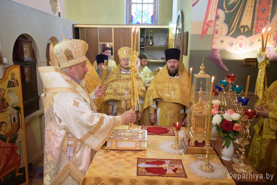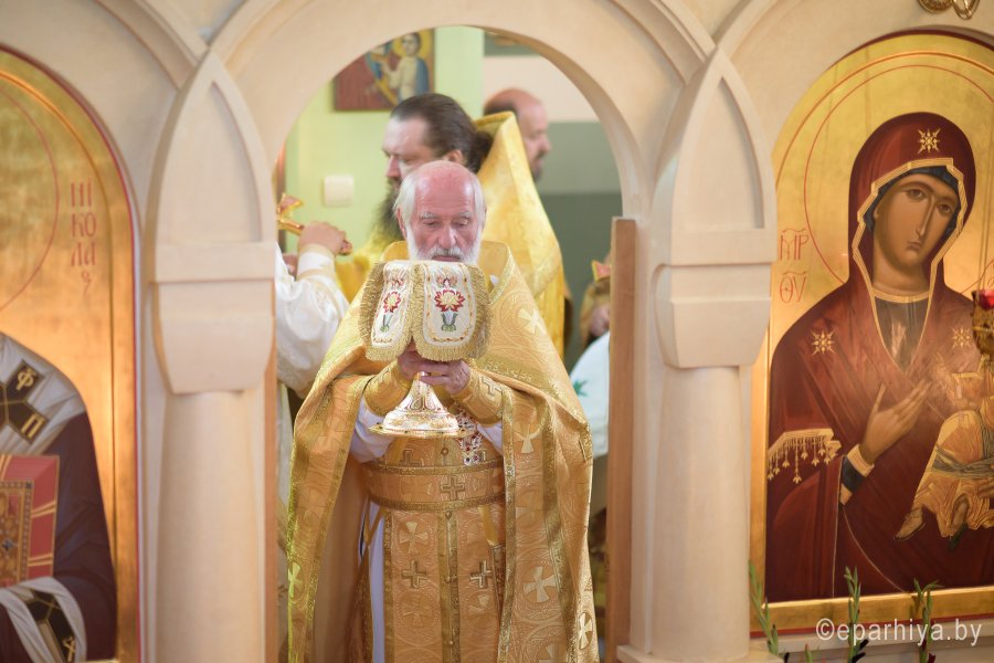 Божественную литургию в день памяти пророка Илии 2 августа 2018г. Высокопреосвященный Стефан совершил в храме Архангела Михаила п. Костюковка. Высокопреосвященному сослужили: секретарь Гомельской епархии протоиерей Георгий Алампиев, благочинный монастырей Гомельской епархии архимандрит Амвросий (Шевцов), духовник Гомельской епархии протоиерей Стефан Гладыщук и духовенство епархии. По окончании богослужения Владыка возглавил Крестный ход, поздравил причастников с принятием Святых Христовых Таин, обратился к молящимся со словами Архипастырского назидания и в память об этом дне раздал всех присутствующих иконки. |