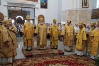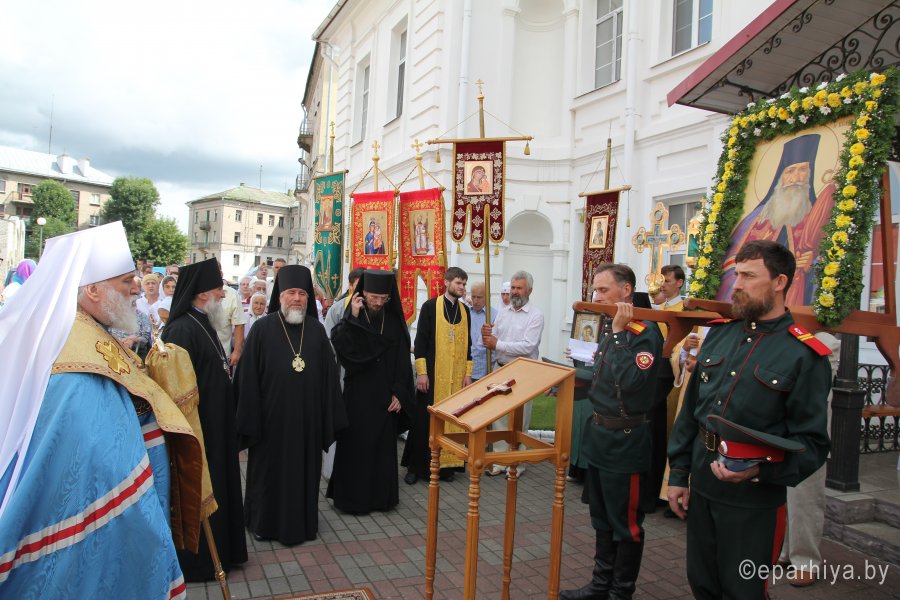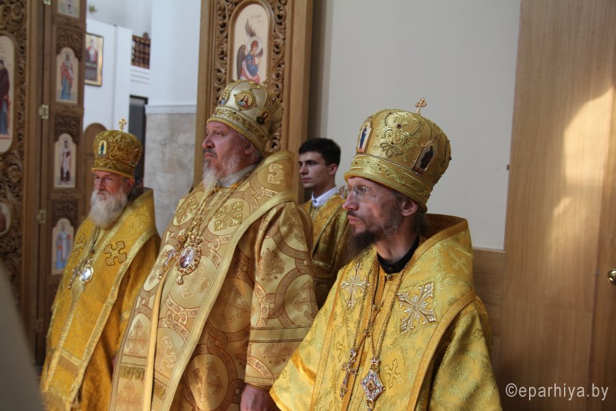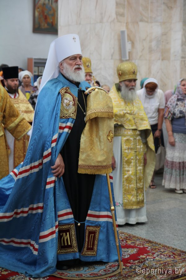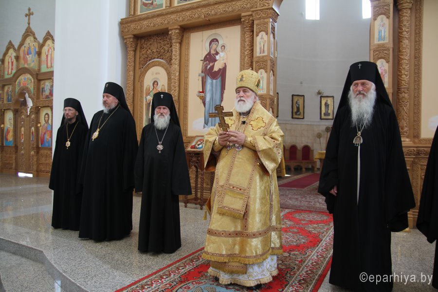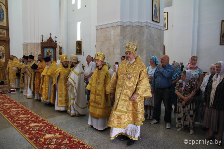 6 августа 2018 года, в день памяти святителя Георгия Конисского, архиепископа Могилевского, митрополит Минский и Заславский Павел, Патриарший Экзарх всея Беларуси, архиепископы: Пинский и Лунинецкий Стефан; Могилевский и Мстиславский Софроний; Брестский и Кобринский Иоанн; Гомельский и Жлобинский Стефан; епископ Туровский и Мозырский Леонид; епископ Борисовский и Марьиногорский Вениамин совершили Божественную литургию в Спасо-Преображенском соборе города Могилева. Архиереям сослужили управляющий делами Минской Экзархии архимандрит Сергий (Брич) и духовенство Могилевской епархии. Перед Божественной литургией Патриаршего Экзарха приветствовал начальник главного управления по идеологической работе, культуре и делам молодежи Могилевского областного исполнительного комитета Андрей Михайлович Кунцевич. На торжествах присутствовал начальник отдела по делам религий и национальностей Могилевского облисполкома Сергей Иванович Савенко и другие представители региональной власти. Богослужебные песнопения исполнил хор под управлением Светланы Михайловой. Проповедь перед Причастием произнес клирик собора иерей Николай Антонов. По заамвонной молитве Патриарший Экзарх, сослужащие архипастыри и священнослужители совершили славление празднику. По окончании Божественной литургии митрополита Павла приветствовал архиепископ Софроний. Митрополит Павел поблагодарил владыку Софрония за теплые слова и всех архипастырей за совместное служение в кафедральном Преображенском соборе. Соборное служение архипастырей является символом единой, святой, соборной и апостольской Церкви. После этого Патриарший Экзарх обратился к молящимся со словом назидания. Патриарший Экзарх поздравил причастников с принятием Святых Христовых Таин и преподал всем архипастырское благословение. После богослужения на площади перед «домом Конисского» — бывшей резиденцией архиепископа Георгия — Патриарший Экзарх возглавил праздничный молебен и славление святителю Георгию. По окончании молебна митрополит Павел обратился к молящимся с приветственным словом. Владыка Экзарх призвал всех христиан хранить драгоценный дар — веру православную, которую так усердно проповедовал и защищал святитель Георгий, и пребывать друг с другом в единомыслии, согласии, молитве и в подлинной христианской любви. |