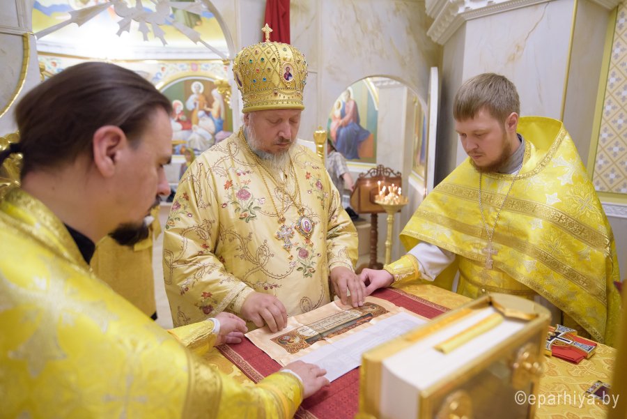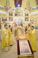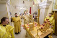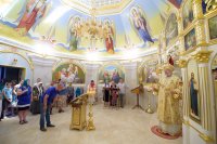 Божественную литургию в праздник Успения прав. Анны, матери Пресвятой Богородицы 7 августа Высокопреосвященный Стефан в сослужении духовенства собора совершил в крестильном храме Свято-Петро-Павловского кафедрального собора г.Гомеля. По окончании богослужения Владыка поздравил причастников с принятием Святых Христовых Таин и обратился к молящимся со словами Архипастырского назидания. |