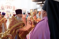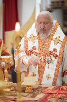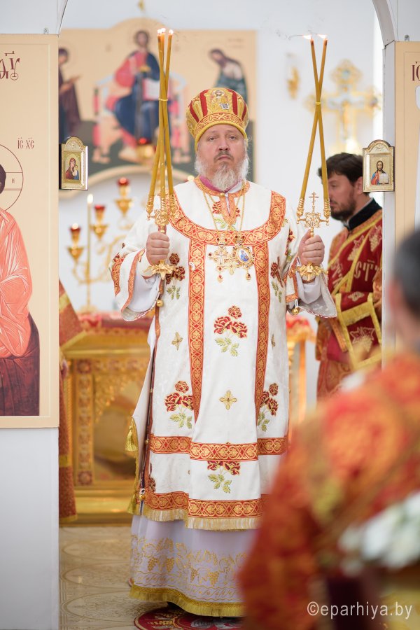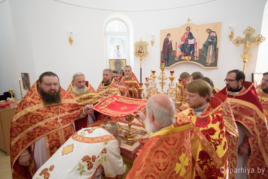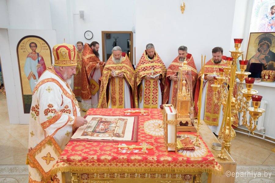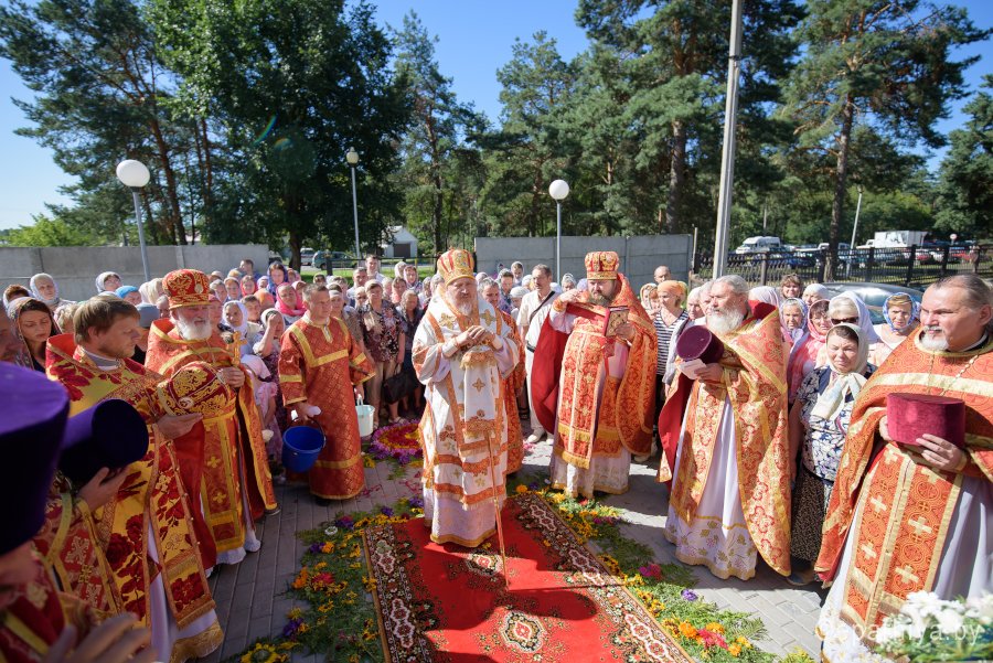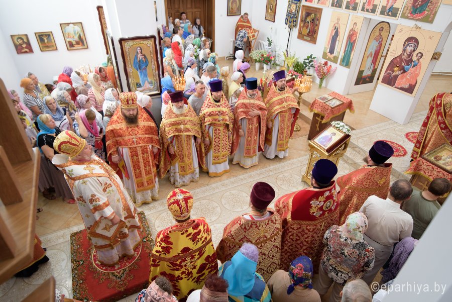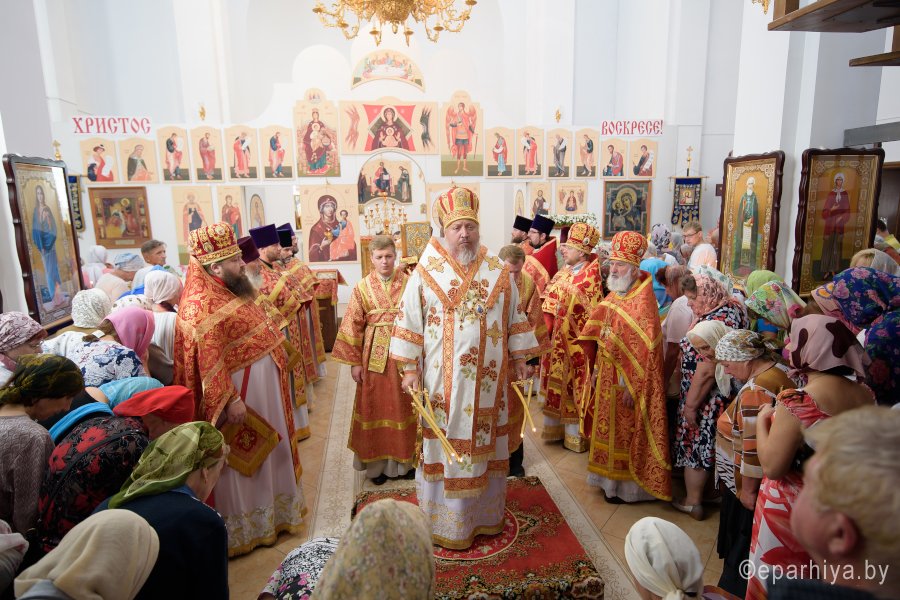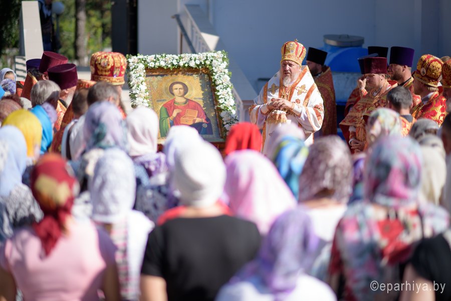 Божественную литургию в день памяти святого великомученика и целителя Пантелеимона в одноименном храме г.Гомеля Высокопреосвященный Стефан совершил 9 августа 2018г. Высокопреосвященному сослужили: секретарь Гомельской епархии протоиерей Георгий Алампиев, благочинный монастырей Гомельской епархии архимандрит Амвросий (Шевцов), духовник Гомельской епархии протоиерей Стефан Гладыщук, благочинный Гомельского городского округа протоиерей Игорь Ольшанов, настоятель прихода протоиерей Владимир Сулимов и духовенство епархии. По окончании богослужения Владыка возглавил Крестный ход, поздравил причастников с принятием Святых Христовых Таин и обратился к молящимся со словами Архипастырского назидания. |