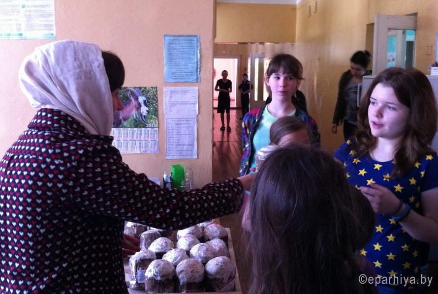 Ребят, лечащихся в Рогачевской детской больнице поздравили с Пасхой Господней сестры милосердия храма святого благоверного князя Александра Невского. Не один маленький пациент не остался без внимания, каждый ребенок получил в дар сладкий презент, ласковую улыбку и теплое слово.