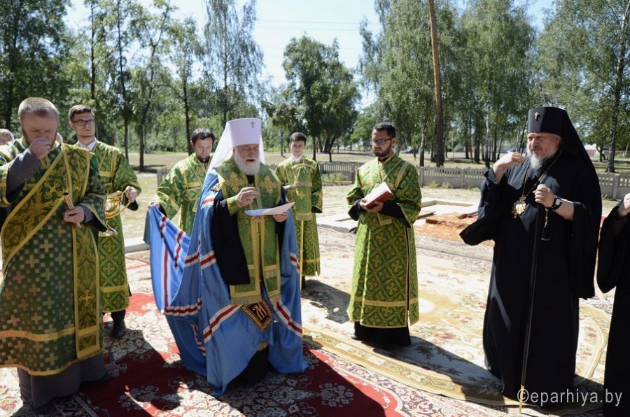 Патриарший Экзарх всея Беларуси совершил чин на основание строящегося храма в честь сщмч. Алексия Лельчицкого