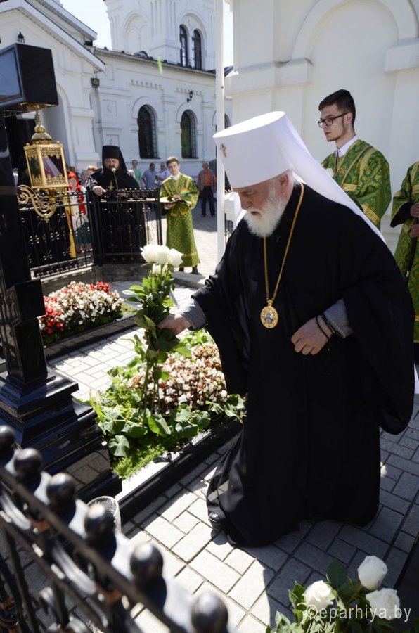 В ходе своей поездки в Гомельскую епархию Высокопреосвященный митрополит Павел, Патриарший Экзарх всея Беларуси совершил рабочий визит в Свято-Никольский мужской монастырь г.Гомеля. Высокопреосвященный митрополит Павел обратился к братии монастыря со словами Архипастырского назидания и поблагодарил всех за теплый прием. Наместник обители архимандрит Амвросий (Шевцов) преподнес в дар Патриаршему Экзарху икону Божией Матери "Козельщанская". Заупокойную литию на могиле приснопамятного архиепископа Аристарха (Станкевича) (+2012) совершили Высокопреосвященный митрополит Павел и Высокопреосвященный архиепископ Стефан в сослужении братии монастыря в священном сане. В завершение визита в Свято-Никольский мужской монастырь Высокопреосвященный Стефан, архиепископ Гомельский и Жлобинский ознакомил Патриаршего Экзарха с ходом строительных работ в новом строящемся здании Епархиального Управления. |