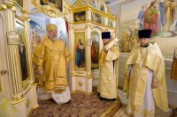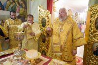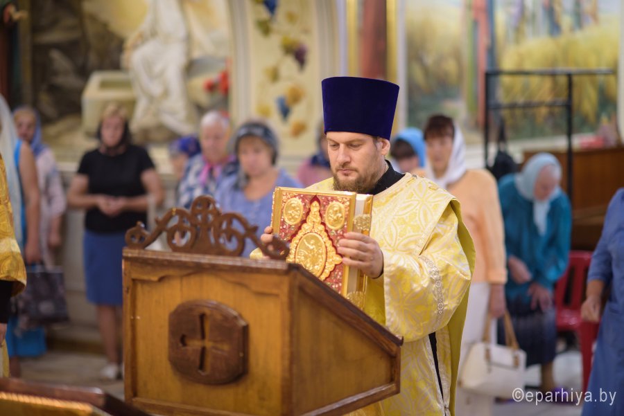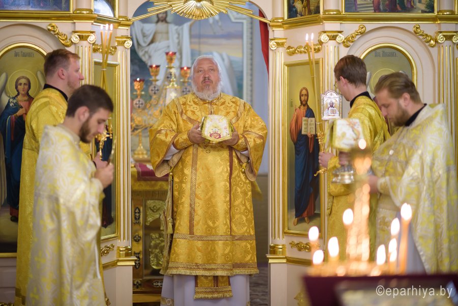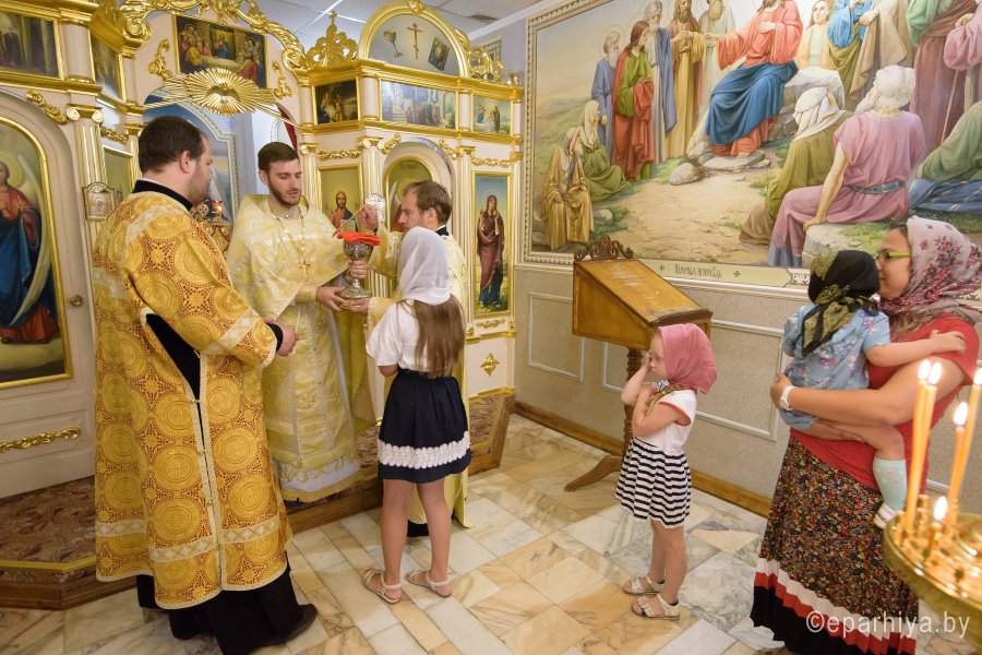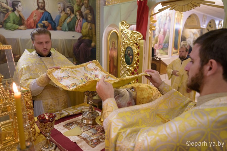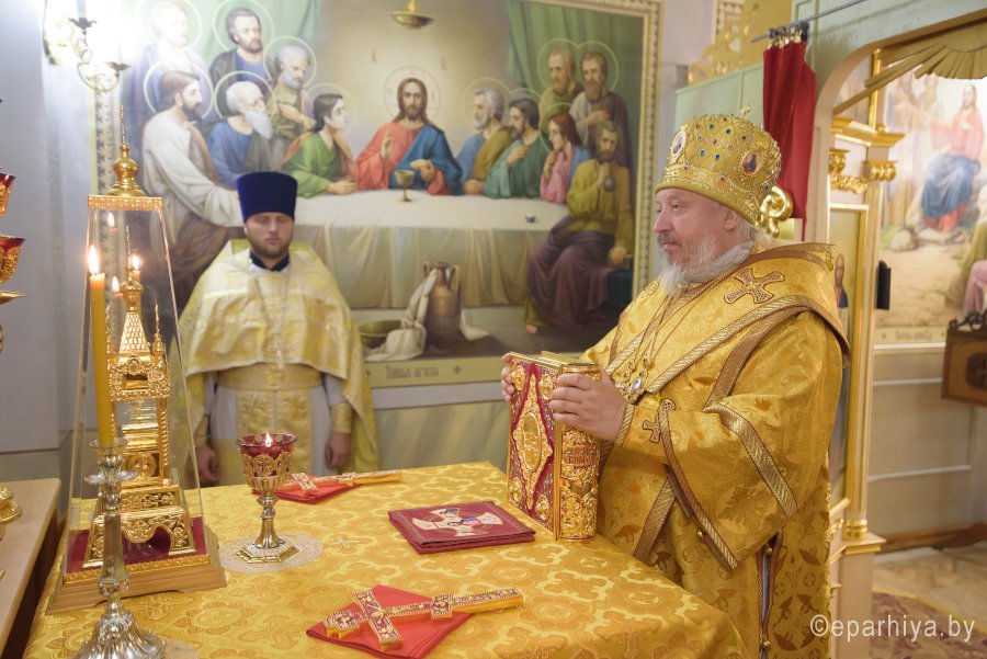 Божественную литургию в понедельник 12-й седмицы по Пятидесятнице 13 августа 2018г. Высокопреосвященный Стефан в сослужении духовенства собора совершил в криптовом храме Свято-Петро-Павловского кафедрального собора г.Гомеля. По окончании богослужения Владыка поздравил причастников с принятием Святых Христовых Таин и обратился к молящимся со словами Архипастырского назидания. |