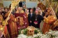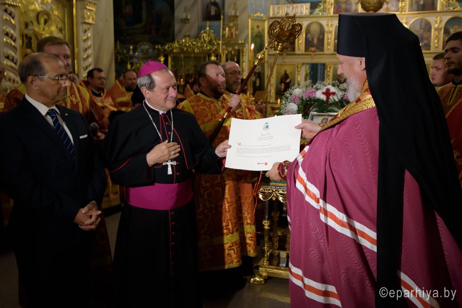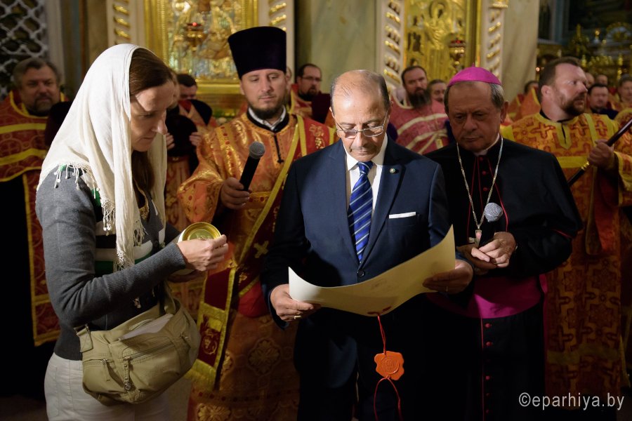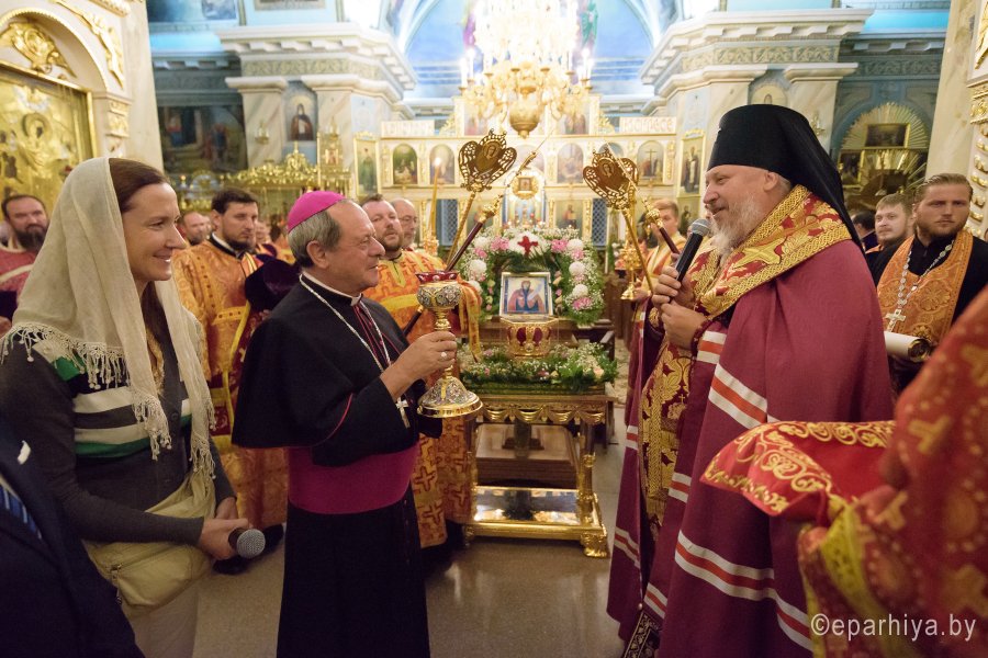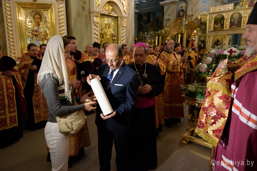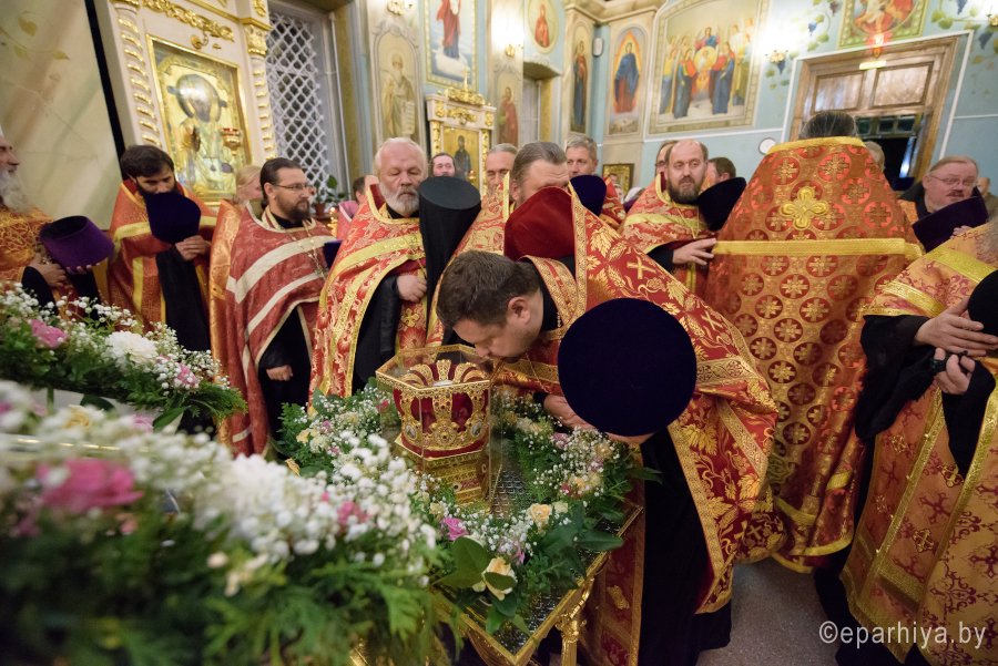 Великую Святыню — ковчег с частицей мощей святой великомученицы Параскевы итальянский епископ Локри и Джераче Франческо Олива доставил в Свято-Петро-Павловский кафедральный собор г.Гомеля 18 августа 2018г., где при многочисленом духовенстве Святыню встретил архиепископ Гомельский и Жлобинский Стефан. Жители и гости г. Гомеля получили возможность молитвенно поклоняться святой, испрашивая для себя и своих близких здравия как душевного, так и телесного. Святая издревле пользовалась на Руси особой любовью и почитанием как помощница в земледельческих трудах и женских заботах. Ей же молятся о покровительстве семейному очагу; в супружеском бесплодии;о достойных женихах. В православной вере существует много великих угодниц Божиих, которым молится прекрасная половина общества. Это: Святая Екатерина Александрийская, Вера,Надежда, Любовь и София, Ксения Петербургская, Анна Пророчица. Особое место занимает Параскева Пятница, сильные молитвы которой посылают женщинам долгожданного ребенка или жениха, о зачатии и, о рождении девочки и пр. ИмяПараскева имеет древнегреческие корнии переводится как «накануне субботы».Родители девушки были обеспеченнымлюдьми, но долго не имели детей и всепятницы молились о ребенке. В православнойвере пятница имеет особое значение.Именно в этот день был распят Христос.Когда божьей милостью в семье родиласьдевочка, ее назвали Параскева. Девушкаисповедовала христианскую веру во времягонения императора Диоклетиана направославных людей. Когда умерли родителиПараскевы, она стала богатой невестойи многие достойные мужчины делалипредложение руки и сердца. Но она выбралапуть безбрачия и называла себя невестойХриста. За отказ поклонятся языческим идолам,девушку привязали к дереву и подвергли пыткам. Затем бросили в тюрьму, где небесный ангел исцелил ее тело. Когда эпарх Аэтий привел ее в языческий храм,то случилось землетрясение, все статуи богов превратились в прах. Он оценил это как магическое действие и приказал привязать святую к столбу и прижигать огнем, но пламя повернулось против язычников. Испугавшись утраты своего влияния, эпарх приказали отрубить ей голову. |