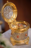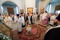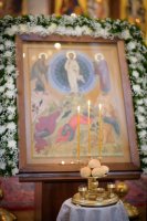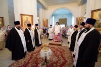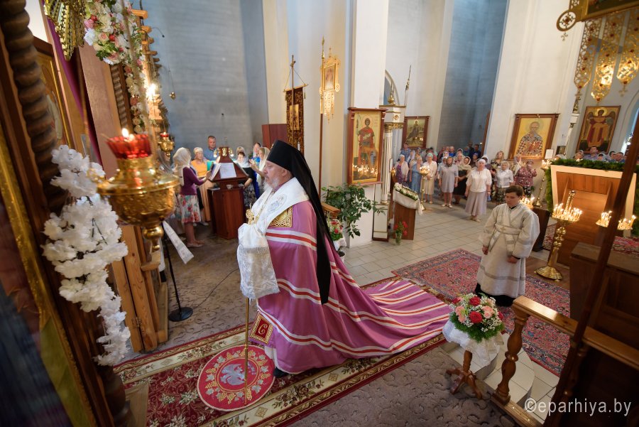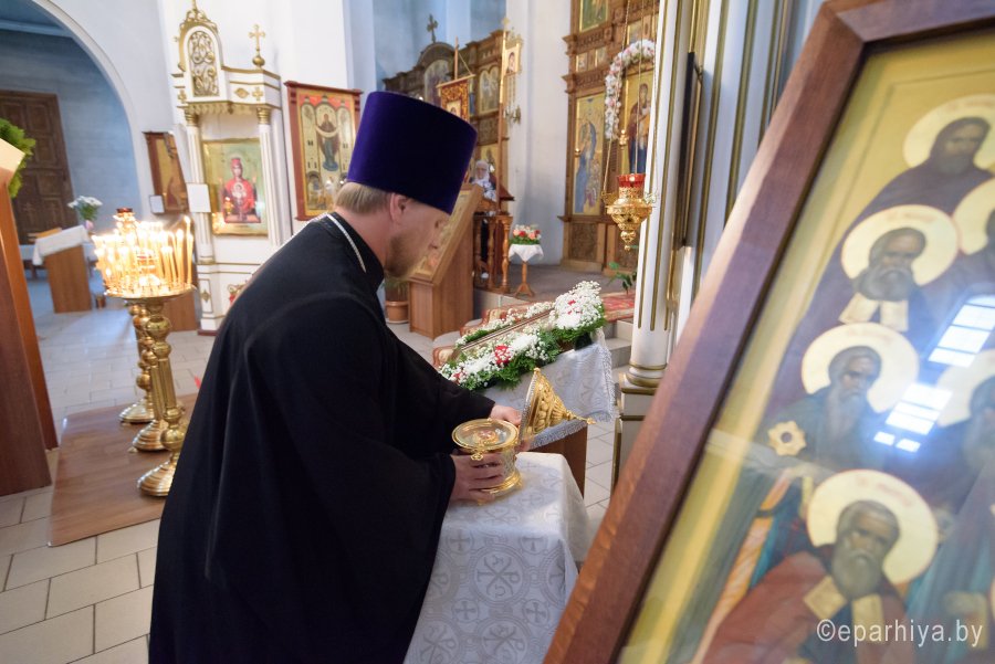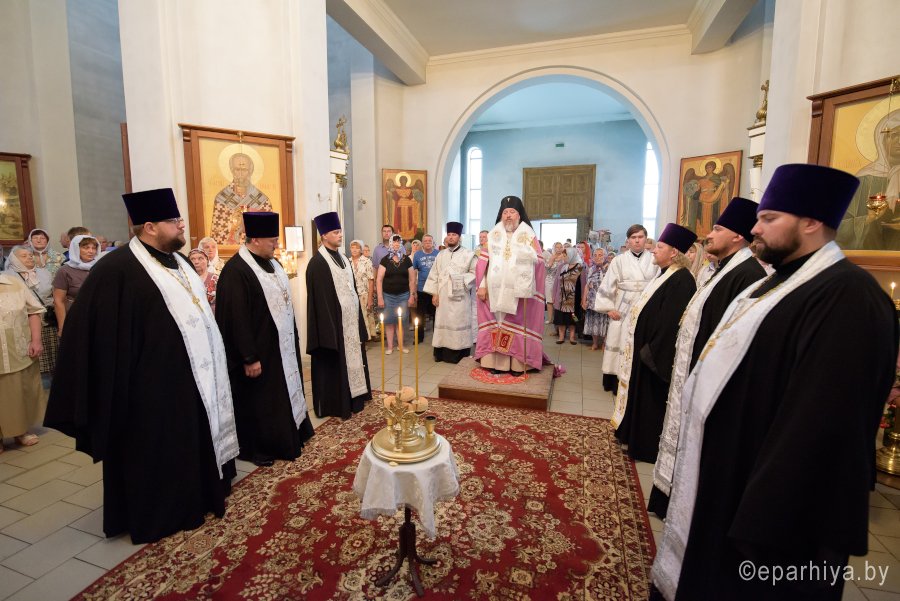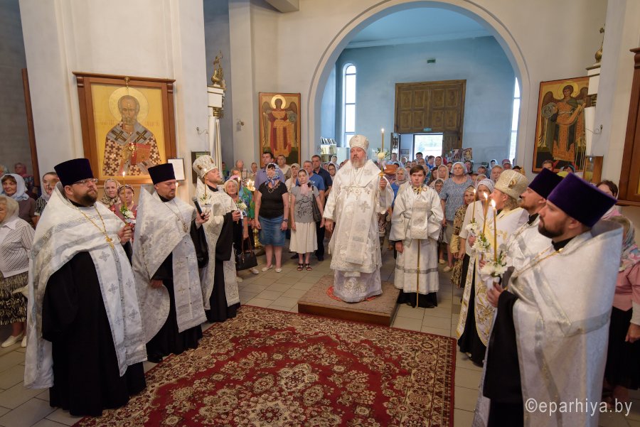 Всенощное бдение в канун праздника Преображения Господня 18 августа 2018г. Высокопреосвященый Стефан совершил в храме Преображения Господня г.Светлогорска. Высокопреосвященому сослужили: секретарь Гомельской епархии протоиерей Георгий Алампиев, благочинный Светлогорского округа протоиерей Александр Кисель и духовенство округа. По окончании богослужения Владыка обратился к молящимся со словами Архипастырского назидания и в память об этом дне раздал всем присутствующим иконки. Для молитвенного поклонения верующих Высокопреосвященный Стефан передал в г.Светлогорск частицу мощей святителя Феодосия Черниговского. Поклониться святому можно в Спасо-Преображенском храме г.Светлогорска до 26 августа 2018г. |