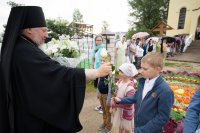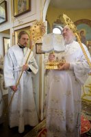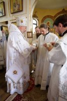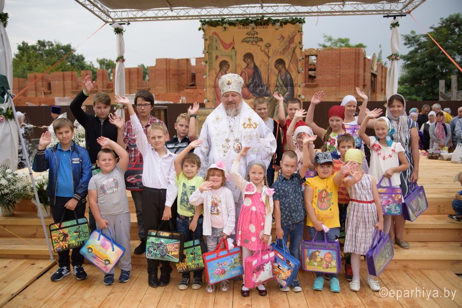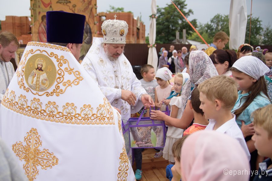 Божественную литургию в праздник Преображения Господня Высокопреосвященный Стефан совершил в Спасо-Преображенском храме г.Гомеля. Высокопреосвященному сослужили: секретарь Гомельской епархии протоиерей Георгий Алампиев, благочинный монастырей Гомельской епархии архимандрит Амвросий (Шевцов), духовник епархии протоиерей Стефан Гладыщук, настоятель храма протоиерей Олег Кострома и духовенство епархии. За богослужением Владыка совершил хиротонию студента Киевской духовной семинарии Иоанна Зайца во диакона. На богослужении присутствовали епископ Локри и Джераче Франческо Олива и Джакомо Мария Олива — директор сектора исследований Национального археологического музея Министерства культуры Итальянской Республики в Реджио. По окончании Литургии Высокопреосвященный Стефан поздравил с Днем рождения секретаря Гомельской епархии протоиерея Георгия Алампиева, а настоятеля прихода протоиерея Олега Кострому с 20-летием со дня иерейской хиротонии. Затем Преосвященный Владыка освятил плоды и обратился к молящимся со словами Архипастырского назидания. В этот день была завершена акция «Соберем портфель в школу!». Преосвященный Стефан преподнес школьные принадлежности детям из многодетных и малообеспеченных семей. |