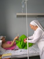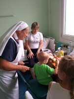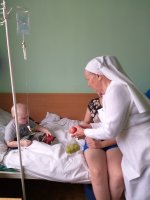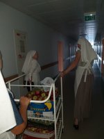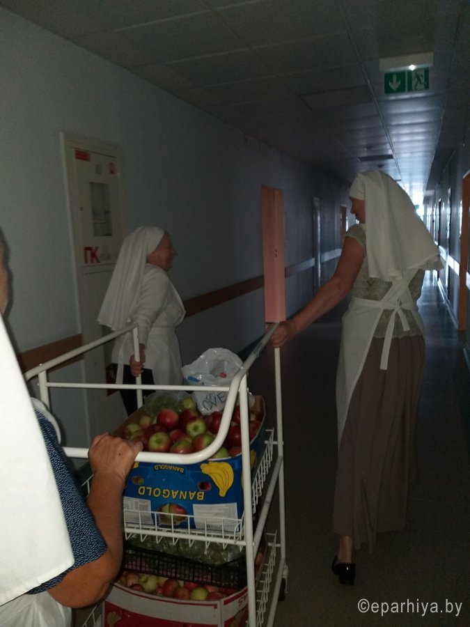 В день Преображения Господня сестричеством во имя св. вмч. Варвары для пациентов Республиканского центра радиационной медицины была проведена традиционная акция "Спас в ладошке". Сестры поздравили с Яблочным Спасом около 300 болящих, находящихся в стационарах нашей больницы, а также персонал центра. Каждый получил в дар освященные яблоки и виноград, а также сладкие подарки. С радостью и благодарностью пациенты встречали наших сестер. Неоценимую помощь в организации праздника оказали Кирьяновы Наталья и Александр, а также прихожане Александро-Невского храма. Без их помощи и поддержки не смогло бы состояться это поздравление. Сестры посетили отделения детской и взрослой гематологии, а также иммунопатологии, гинекологии, хирургии, ЧАЭС и офтальмологии. |