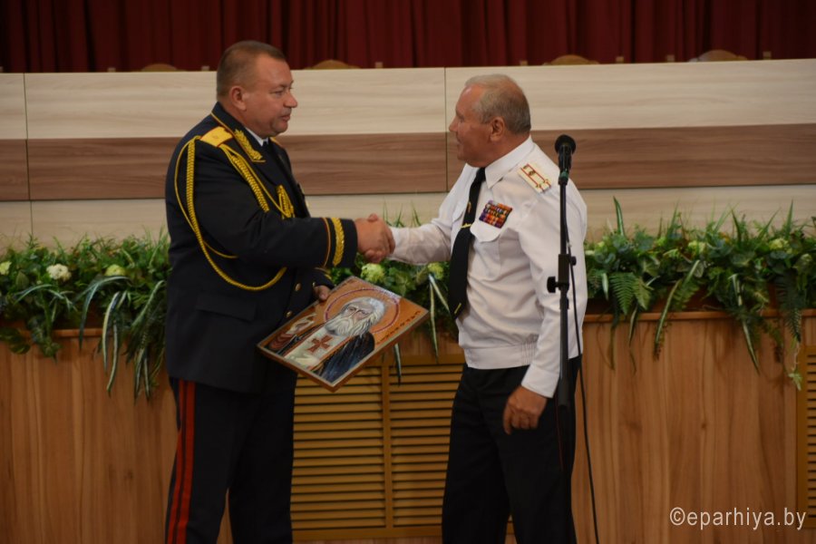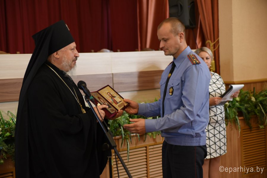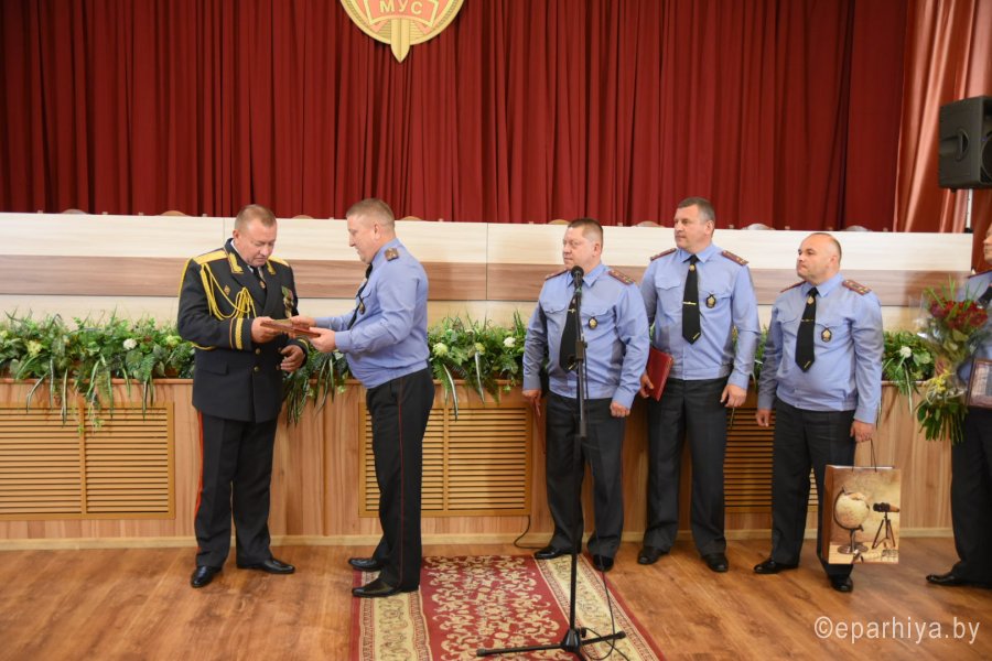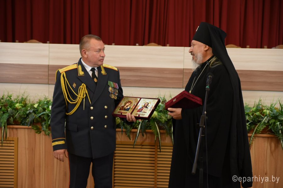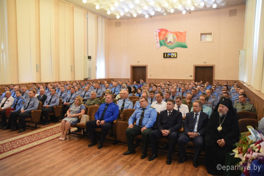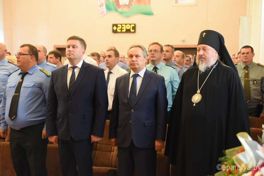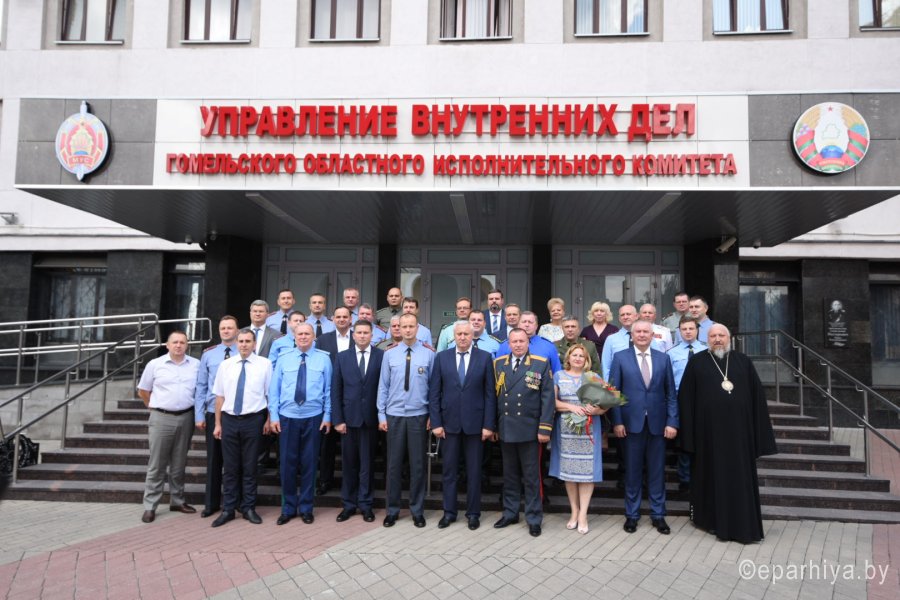 20 августа 2018г. в здании Управления внутренних дел Гомельского областного исполнительного комитета состоялось торжественное собрание офицеров, посвященное представлению нового начальника УВД Гомельского облисполкома Александра Павловича Васильева. В ходе мероприятия Высокопреосвященый Стефан поблагодарил за труды генерал-майора милиции Захарчука Владимира Андреевича и благословил Васильева Александра Павловича на служение на благо Отечества в новой должности. В мероприятии также приняли участие Председатель Гомельского областного исполнительного комитета Владимир Андреевич Дворник и Председатель Гомельского городского исполнительного комитета Петр Алексеевич Кириченко, а также главы Администраций города Гомеля. |