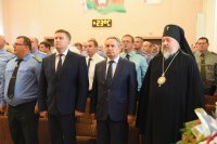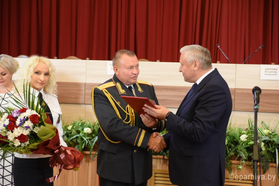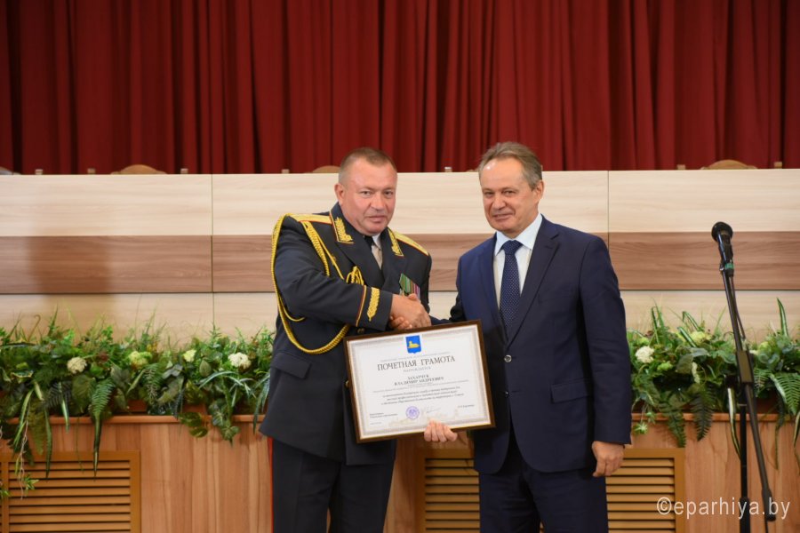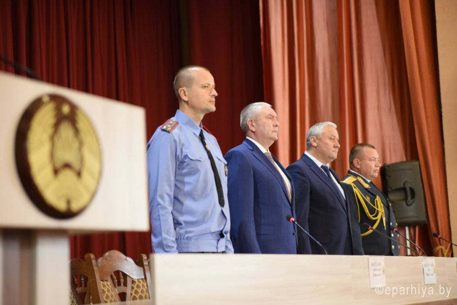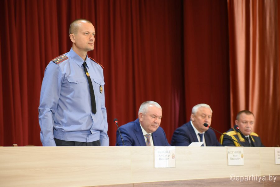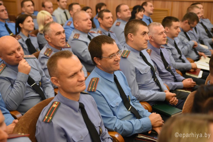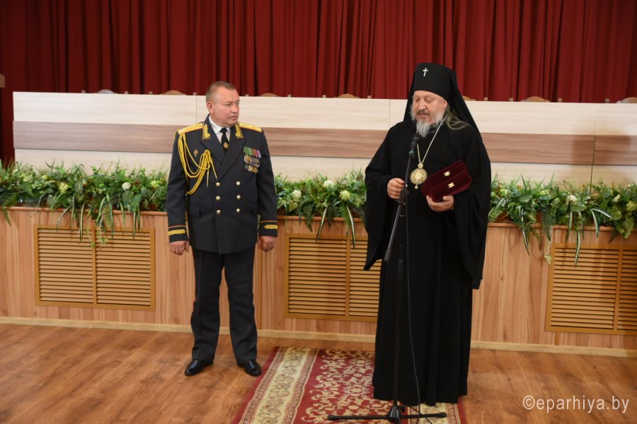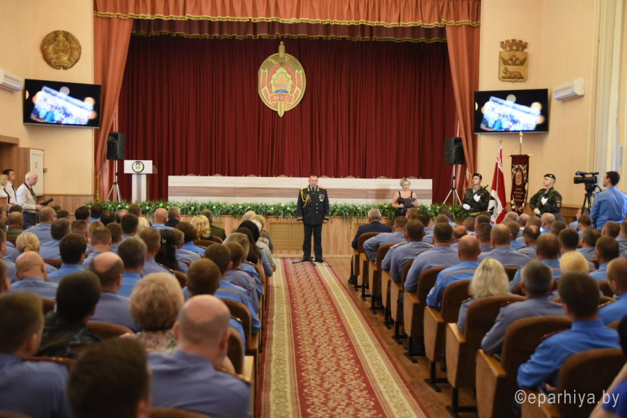 20 августа 2018г. в здании Управления внутренних дел Гомельского областного исполнительного комитета состоялось торжественное собрание офицеров, посвященное представлению нового начальника УВД Гомельского облисполкома Александра Павловича Васильева. В ходе мероприятия Высокопреосвященый Стефан поблагодарил за труды генерал-майора милиции Захарчука Владимира Андреевича и благословил Васильева Александра Павловича на служение на благо Отечества в новой должности. В мероприятии также приняли участие Председатель Гомельского областного исполнительного комитета Владимир Андреевич Дворник и Председатель Гомельского городского исполнительного комитета Петр Алексеевич Кириченко, а также главы Администраций города Гомеля. |