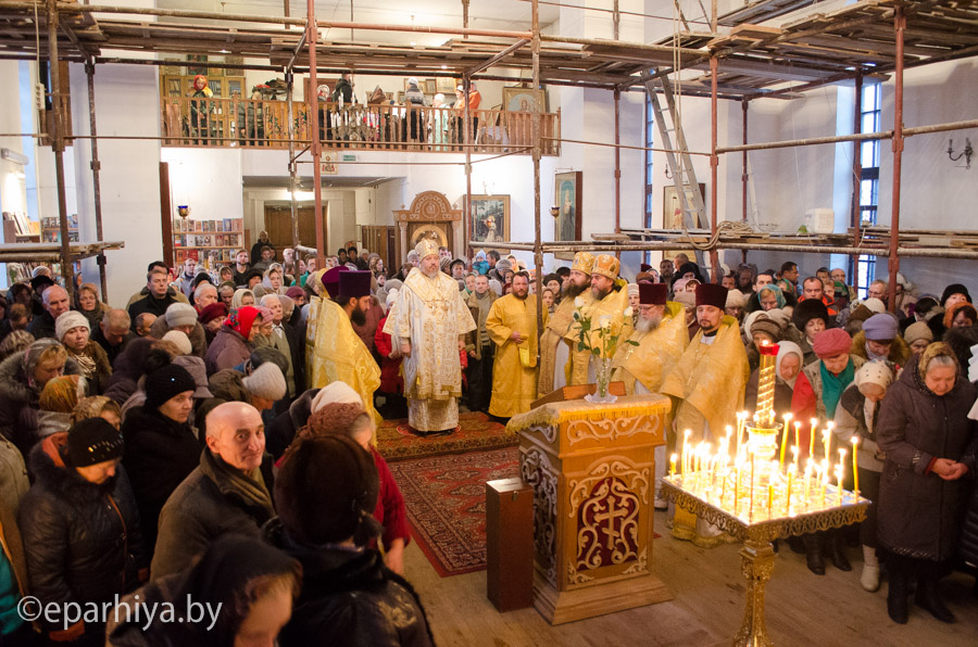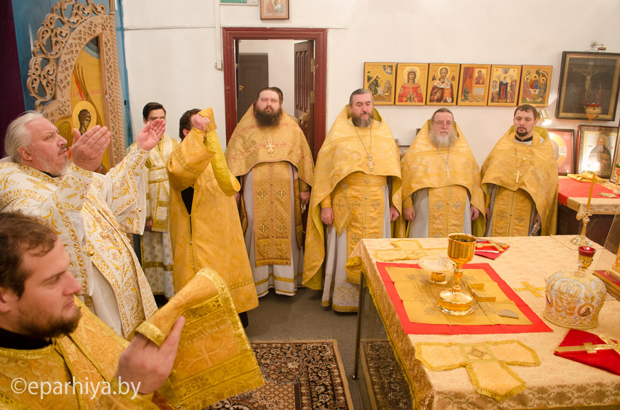 6 декабря 2014г., в день памяти св.блг.кн. Александра Невского, Преосвященнейший Стефан возглавил Божественную литургию в одноименном храме г.Гомеля. Преосвященнейшему сослужили: секретарь Гомельской епархии протоиерей Георгий Алампиев, благочинный Гомельского городского округа протоиерей Стефан Гладыщук, благочинный монастырей Гомельской епархии архимандрит Амвросий (Шевцов), настоятель храма Александра Невского г.Гомеля и духовенство епархии. По окончании богослужения Владыка возглавил Крестный ход с иконой св.блг.кн. Александра Невского, после чего освятил строящееся здание воскресной школы. Также Владыка вручил архиерейские грамоты и медали особо потрудившимся в благоустройстве храма. |