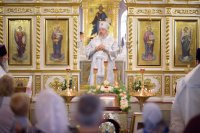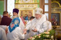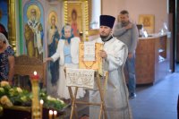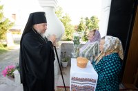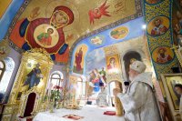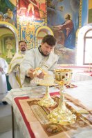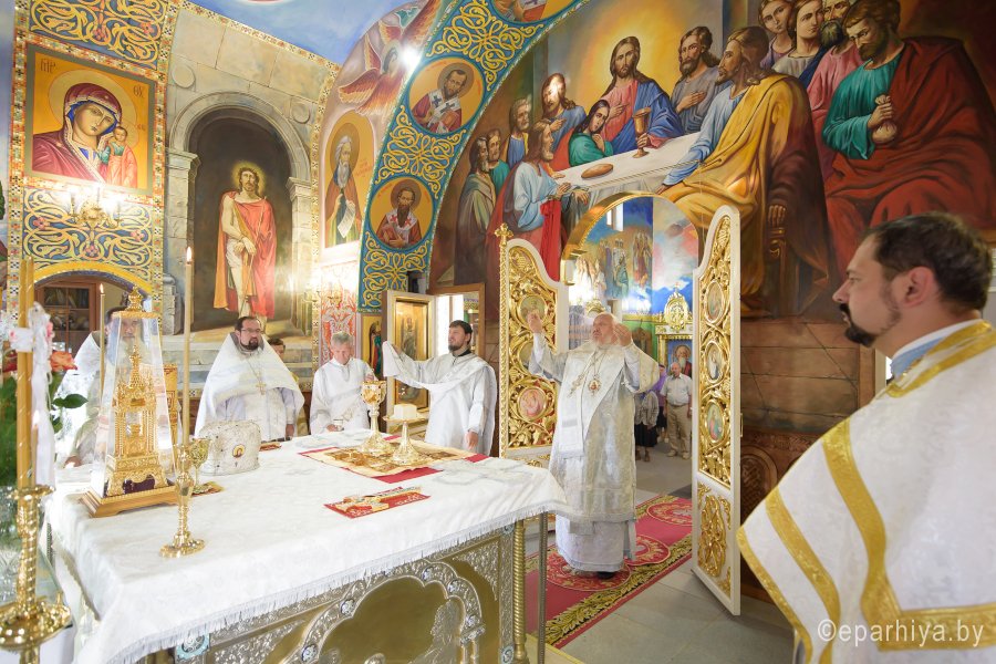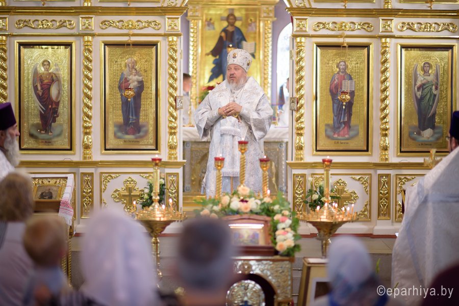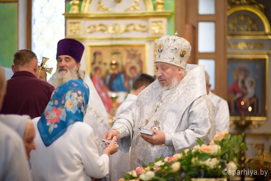 Божественную литургию в субботу 13-й седмицы по Пятидесятнице 25 августа 2018г. Высокопреосвященный Стефан совершил в храме святого преподобного Сергия Радонежского г.Гомеля. Высокопреосвященному сослужили: благочинный Гомельского городского округа протоиерей Игорь Ольшанов, благочинный Гомельского районного округа протоиерей Артемий Кривицкий, настоятель прихода протоиерей Андрей Кривицкий и духовенство епархии. По окончании богослужения Владыка поздравил причастников с принятием Святых Христовых Таин, обратился к молящимся со словами Архипастырского назидания и в память об этом дне раздал всем присутствующим иконки. |