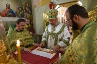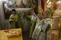 Божественную литургию в понедельник 14-й седмицы по Пятидесятнице 27 августа 2018г. Высокопреосвященный Стефан в сослужении духовенства собора совершил в криптовом храме Свято-Петро-Павловского кафедрального собора г.Гомеля. По окончании богослужения Владыка поздравил причастников с принятием Святых Христовых Таин и обратился к молящимся со словами Архипастырского назидания. |