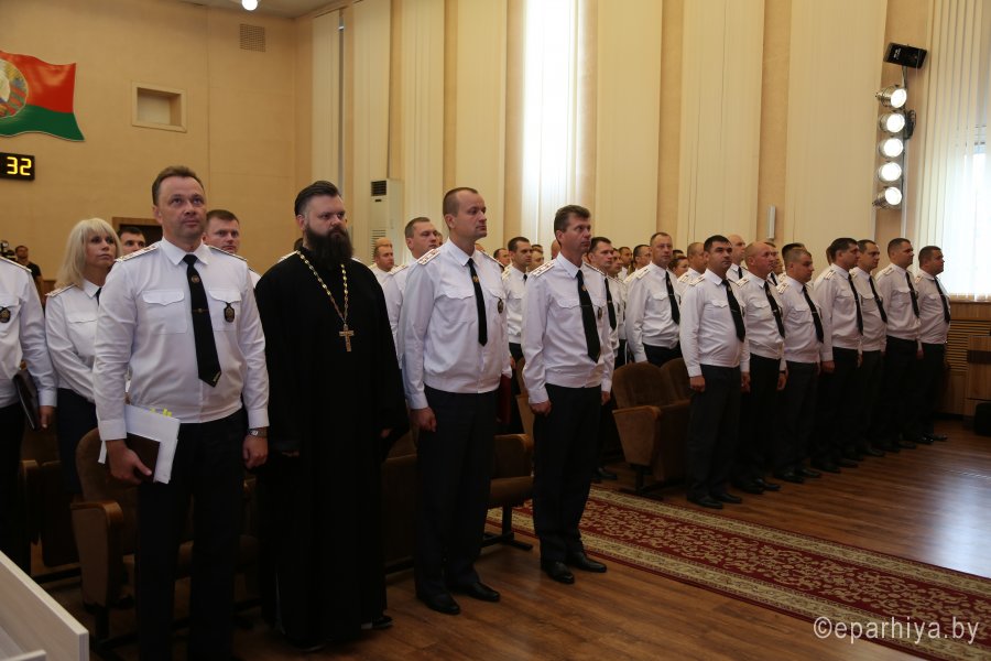 28 августа в актовом зале УВД Гомельского облисполкома состоялось торжественная церемония открытия республиканского смотра-конкурса на звания «Лучший сотрудник конвойных подразделений и специальных учреждений» и «Лучший сотрудник уголовно-исполнительных инспекций». На мероприятии присутствовали руководство УВД, представители обл- и горисполкомов, личный состав. От имени Гомельской епархии в церемонии принял участие председатель отдела по молодежному служению Гомельской епархии иерей Дмитрий Мельников. |