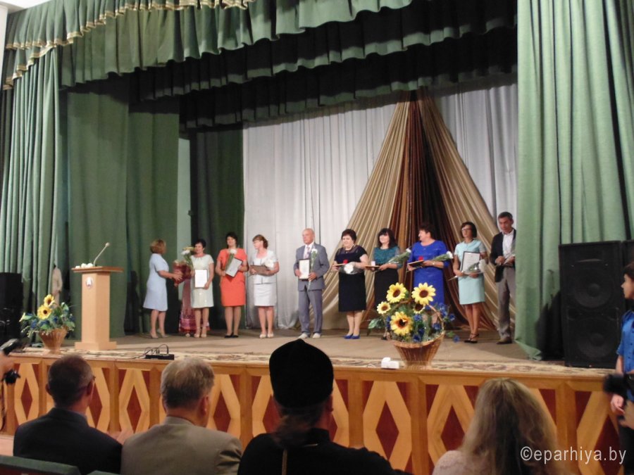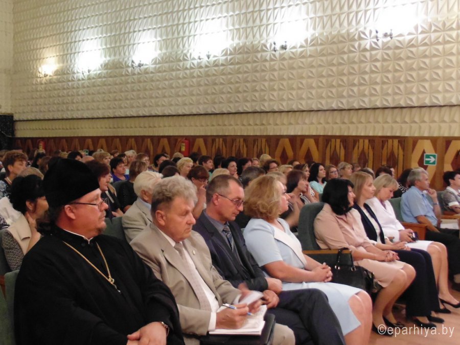 Накануне нового учебного года 30 августа 2018 года в Добрушском городском доме культуры «Мелиоратор» прошла августовская конференция работников отраслей образования, спорта и туризма Добрушского райисполкома. Ежегодный августовский форум — это не только праздник встречи друзей и коллег, но и, прежде всего, серьезный разговор, возможность подвести итоги, проанализировать результаты, обсудить те изменения, которые происходят в системе образования, поставить задачи на новый учебный год. В работе конференции приняли участие руководители райисполкома, представители управления образования облисполкома, руководители общественных организаций района и области, ветераны педагогического труда и молодые специалисты учреждений образования Добрушского района. Православную Церковь представлял благочинный Добрушского округа протоиерей Алексий Пилипенко. Он вручил грамоты-благословения за плодотворное сотрудничество в деле духовно-нравственного воспитания и выразил сердечную благодарность особо отличившимся педагогам, а также подарил икону и Библию руководству ООСиТ. Обращаясь к присутствующим священнослужитель отметил величайшую миссию учителя в жизни каждого человека: «Вы вносите вклад очень огромный, ведете наших деток по дороге знаний. И дай вам Бог, чтобы на этом пути вы всегда выполняли свои задачи, достигали желаемого, учили наших детей любить Родину, что сейчас так актуально и нужно всем нам. Хотелось бы, чтоб из ваших уст звучал призыв любви к родителям, любви к Отечеству и нашей Родине». |