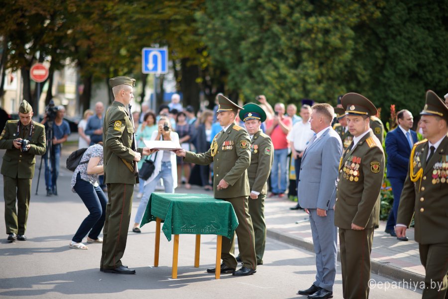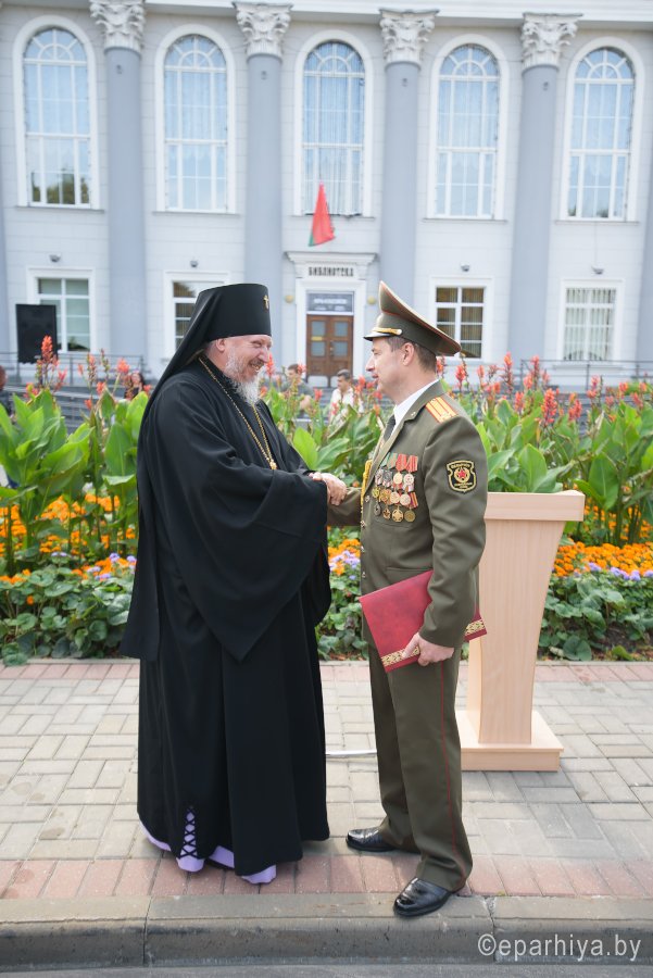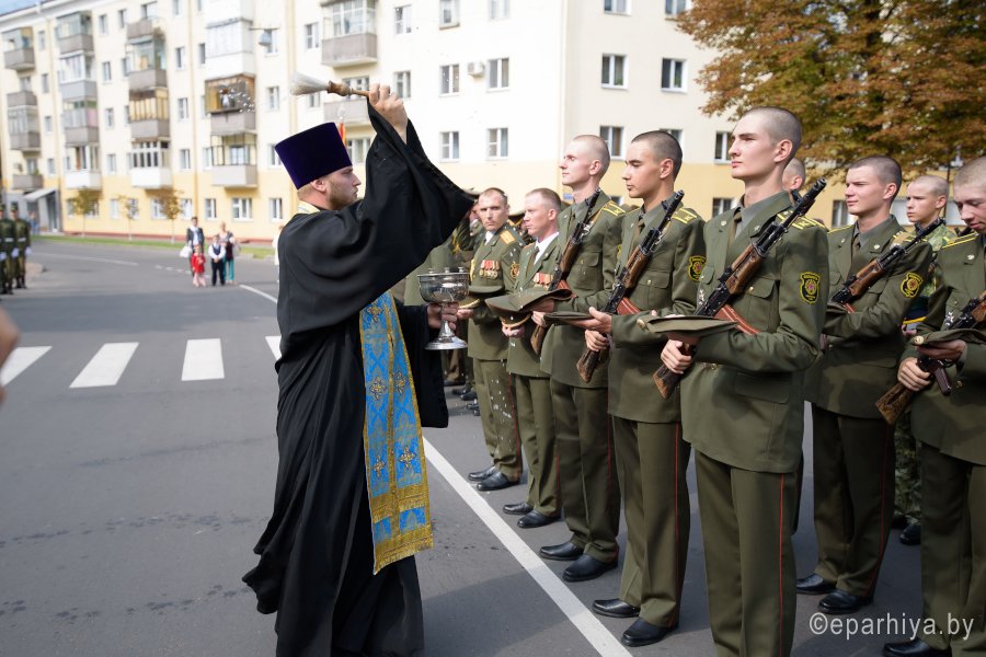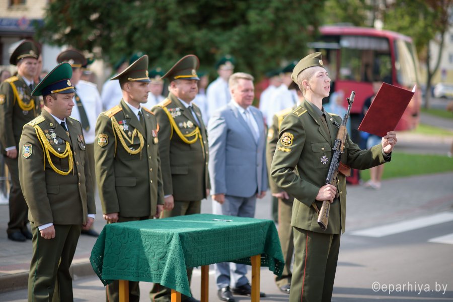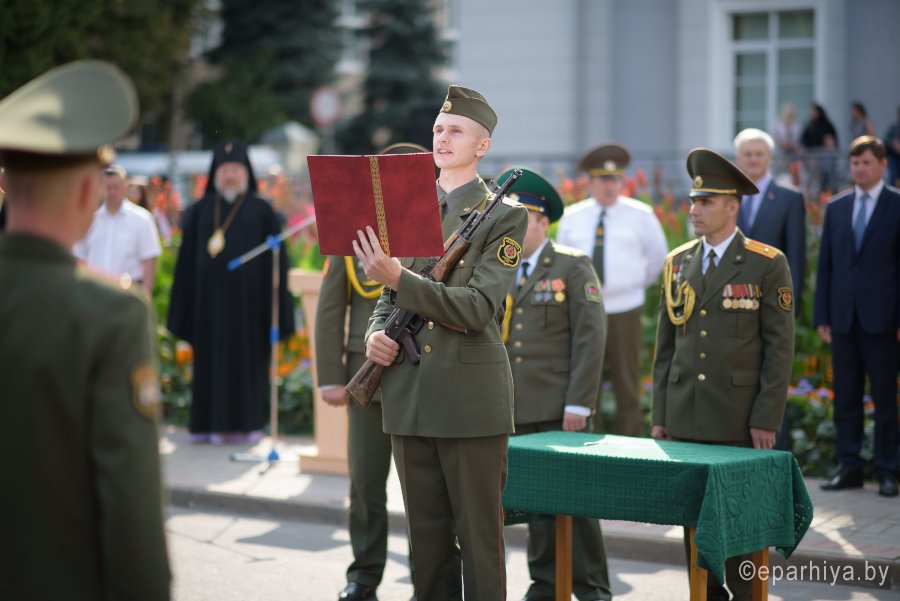 1 сентября 2018г. Высокопреосвященный Стефан принял участие в торжественном событии - курсанты военно-транспортного факультета БелГУТа принесли военную присягу – самую важную клятву в своей жизни, обязуя себя посвятить свою жизнь защите незыблемых ценностей каждого гражданина – своей родной Беларуси. В ходе мероприятия Высокопреосвященный Владыка дал напутствие молодому воинству, а ключарь Свято-Петро-Павловского кафедрального собора г.Гомеля иерей Алексей Сергеев окропил святой водой собравшихся. Принятие военной присяги – очередной шаг военнослужащего к становлению, осознание важности долга перед своей Отчизной, народом, домом, семьей в их защите. Вот уже месяц как курсанты I курса военно-транспортного факультета постигали основы военной, идеологической и духовной составляющей своей Родины, преобразившись из вчерашних мальчишек в настоящих мужей, они подошли к этому важному этапу своей жизни. |