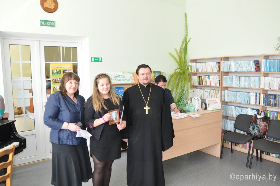 18 апреля 2015г., в рамках Пасхального фестиваля, в читательском зале библиотеки-филиала №1 им. И.П. Мележа ГУ «Гомельская центральная библиотека им. А.И.Герцена», прошло подведение итогов конкурса «Пасхальная радость», в котором было представлено более 100 работ от 46 участников. На мероприятии, все конкурсанты без исключения, были награждены подарками от Гомельской епархии, которые вручал им клирик Спасо-Приорженского храма протоиерей Александр Цуканов. Также на подведении итогов присутствовали: координатор отдела Гомельской епархии по социальному служению и благотворительности Машковская Анна Михайловна, представители городского центра социального обслуживания семей и детей, педагог воскресной школы Спасо-Преображенского храма Наталия Кодис.