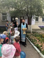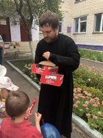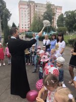3 сентября 2018 года клирик храма Иверской иконы Божией Матери в г.Гомеле иерей Дмитрий Загоруев принял участие в торжественной линейке ГУО "Ясли-сад №124 г.Гомеля". В своем обращении священнослужитель поздравил ребят с началом учебного года, а также пожелал не лениться и достойно исполнять свою главную обязанность - хорошо учиться. После сопутствующих поздравлений детям вручили сладкие подарки, а они в рамках акции "Соберем портфель в школу" передали канцелярские принадлежности для детей из малообеспеченных семей, находящихся под опекой прихода. |