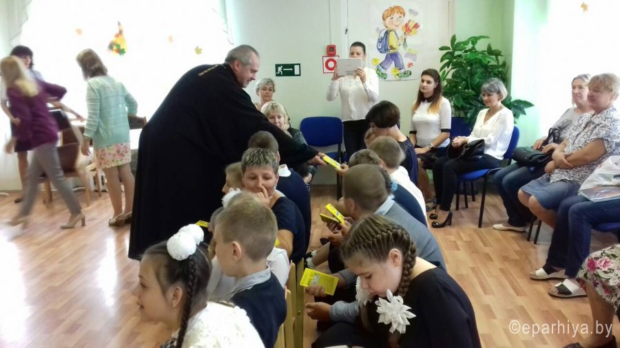3 сентября настоятель прихода храма преподобного Серафима Саровского в г. Жлобине протоиерей Леонид Михайловский принял участие в торжественной линейке к началу нового учебного года в коррекционном центре для детей инвалидов в г. Жлобине. Священнослужитель благословил деток иконками, пожелал им здоровья, постигать науку и учиться старательно. Так же подарил книги, журналы и сладкие подарки. |