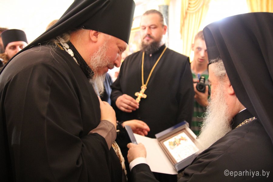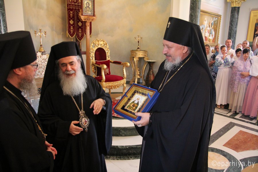 В четвертый день нахождения на Святой Земле паломники приняли участие в приеме, который давал Блаженнейший Патриарх Иерусалимский Феофил. В своей беседе с паломниками Блаженнейший Патриарх рассказал об огромном духовном значении паломничества в Иерусалим в наши дни. Высокопреосвященный Стефан, архиепископ Гомельский и Жлобинский преподнес в дар Блаженнейшему Патриарху икону угодника земли гомельской святого праведного Иоанна Кормянского. В этот же день группа паломников посетили храм Рождества Христова – место Святого вертепа – Великого явления Богомладенца, монастыри Иудейской пустыни: лавра прп.Саввы Освященного и монастырь прп. Феодосия Великого. Продолжение следует... |
