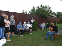 16 сентября 2018 года в городе Добруше в часовне, освященной в честь святых благоверных князя Петра и княгини Февронии, покровителей супружества, был отслужен водосвятный молебен с пением акафиста святым. После богослужения праздник, приуроченный Дню семьи, любви и верности, продолжился на лужайке около часовни. Автор и исполнитель Сергей Стариков, житель города Добруша, исполнил стихи и песни под гитару, рассказал слушателям увлекательные истории происхождения своих произведений. Праздничный концерт он завершил песней "Infinity" ("Бесконечность"), с которой в этом году стал победителем на конкурсе "Православие моя надежда". По окончании мероприятия гости получили сладости и буклеты от приходской молодежи. |